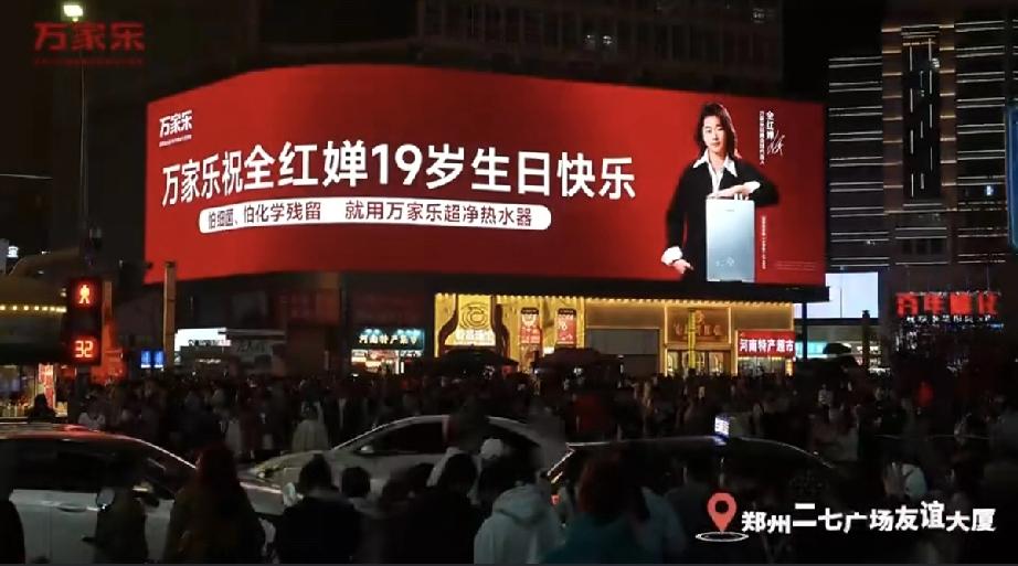 万家乐给全红婵庆贺19岁生日排面拉满,全国19个大城市核心地段大屏同时庆生,场面太震撼了! 3月28日一大早,万家乐发出给全红婵庆生的视频,这一天是全红婵19岁的生日,她是2007年出生的。 只见万家乐在全国19个大城市的核心地段电子大屏上,同时打出给全红婵庆生的画面。 这些城市有南京,广州,上海,北京,西安,武汉,深圳,南昌,郑州,长沙,南宁,天津,合肥,成都,重庆,苏州,贵阳,济南。 19岁生日刚好是19个城市大屏,全红婵从来没有想到过自己的生日会得到如此的厚爱。 怪不得她在生日现场笑得那么开心,万家乐品牌真是有心了,让全红婵感受到了不一样的温暖,也让网友们大开眼界,原来生日还可以这样过,太有排面了!
