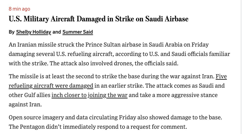 WSJ,CBS:美軍在沙特空軍基地Prince Sultan受到最新襲擊,戰損和傷亡嚴重。