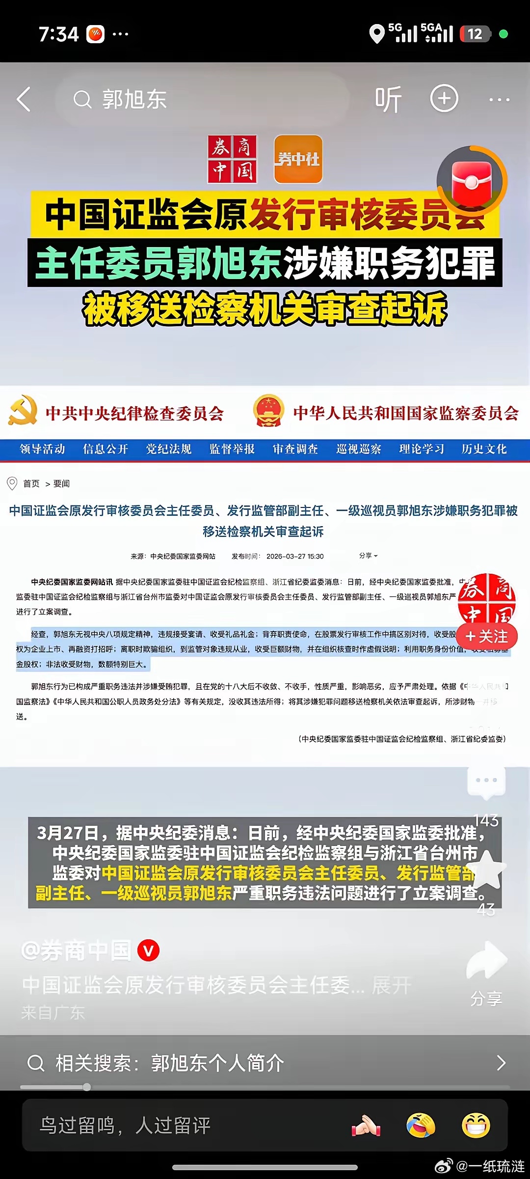发审委主任被查!A股这颗“毒瘤”终于被挖了!证监会原发审委主任郭旭东栽了!收股权、给企业上市打招呼,把手里的审核权当成了捞钱的工具。难怪咱们散户总觉得不公平:有人靠内幕提前吃肉,有人追高接盘,原来根子就在这——连市场“看门人”都在监守自盗!这次被查,就是给A股刮骨疗毒!斩断发审环节的利益链,以后“带病上市”“暗箱操作”会少很多,咱们小散的钱袋子也能更安全。这才是真的在还市场一个清白!证监会腐败证监会落马官员任国查