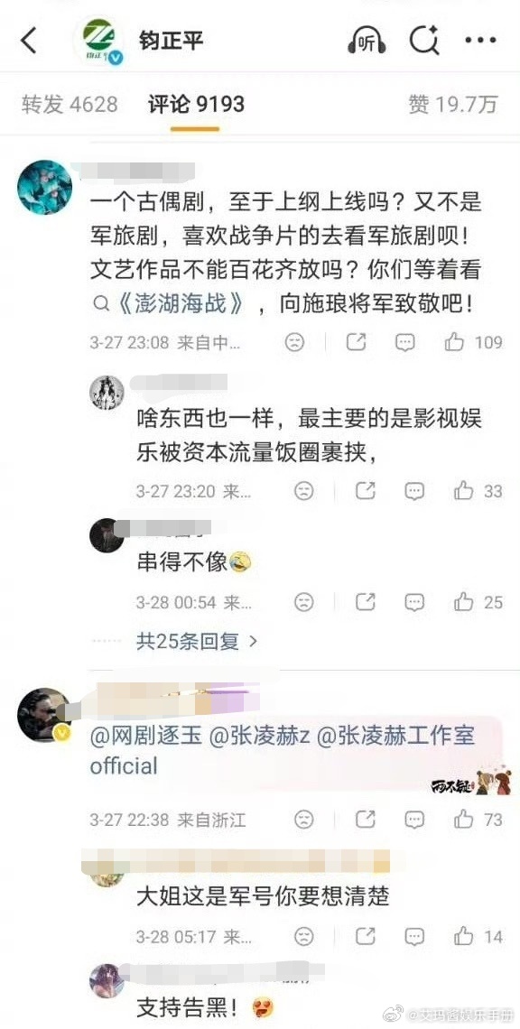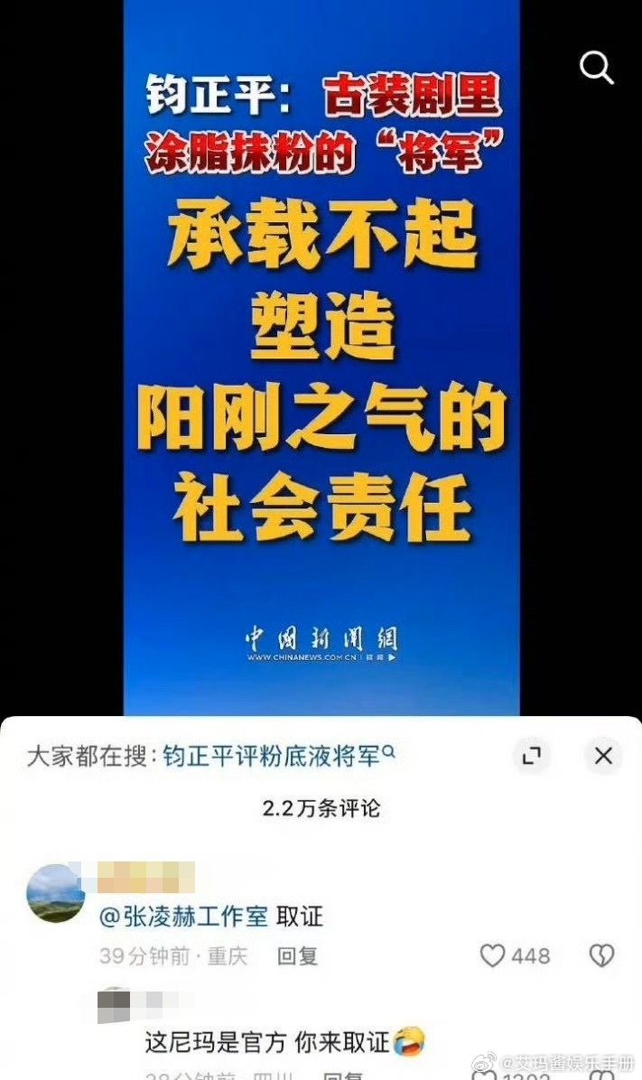 钧正平:“粉底液将军、没有阳刚之气。”将军可以帅但不能没杀气