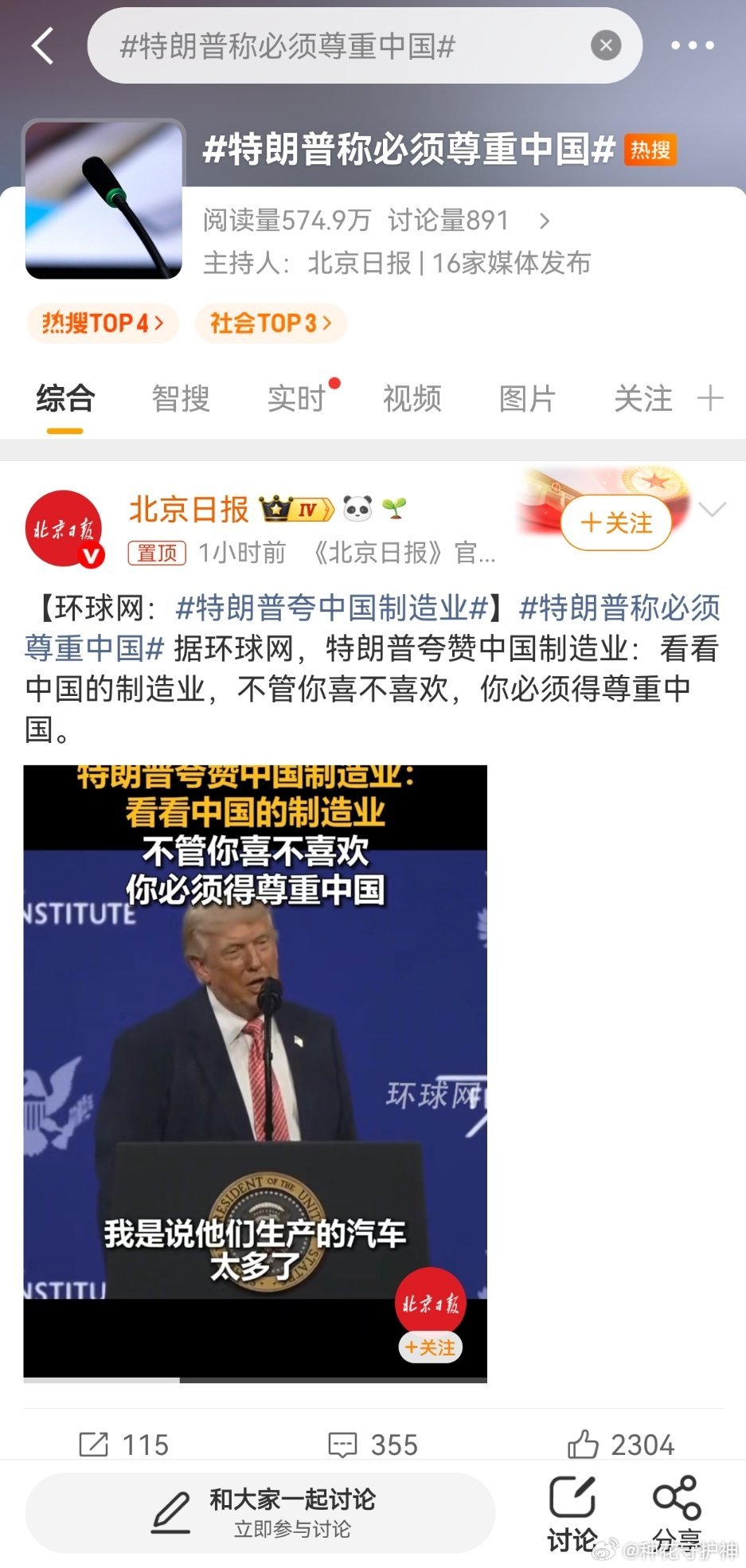 特朗普称必须尊重中国他先是强调美国是“世界上最火热的国家”。水深火热?没毛病!