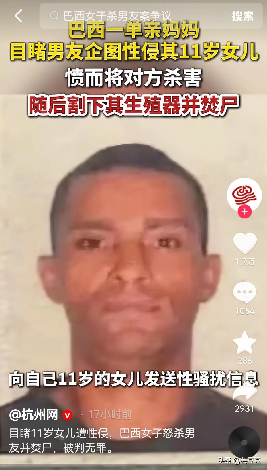 判得好! 巴西一个女的,亲眼看见男友要性侵自己女儿,直接把他拖到客厅捅死了。后来还跟邻居一起把尸体拉到荒地里,割了生殖器,又把尸体烧了。 事发之后她马上就去自首了,检察院说她这是故意杀人、毁坏尸体,还带坏未成年人,要追究她重罪。 结果最后陪审团判她无罪,说她这是为了保护女儿,属于正当防卫,而且是情绪失控下的保护性行为。法官当场就撤了所有罪名,把人直接放了。 看到这个判决,真的忍不住拍手称快! 面对这样的恶魔,换做任何一个母亲在那一刻,都不可能保持理智冷静。她的愤怒反击,是为人母最本能、最正当的反抗。 恶有恶报,为陪审团点赞。大快人心,这样的判决,才真正暖了天下父母的心! 如果都是这样的判法,估计会减少很多犯罪分子,你们觉得呢?