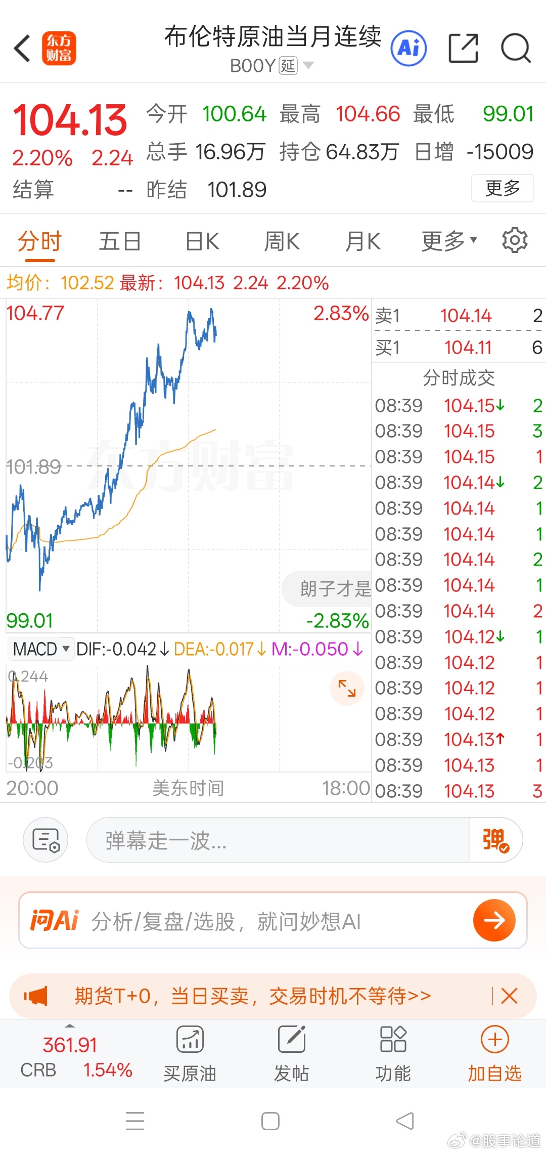 油价再次暴拉到104美元。整个欧州股市场全部下跌,美股期货下跌,今晚又热闹了。从报道上看,美国已经完全控制不了以色列,今天再次袭击了伊朗的生产水雷的地方。现在伊朗说那么中东驻美军的酒店就不算民用设施了。驻美军的地方,可能会迎来打击。冲突继续升级。今日看盘股票