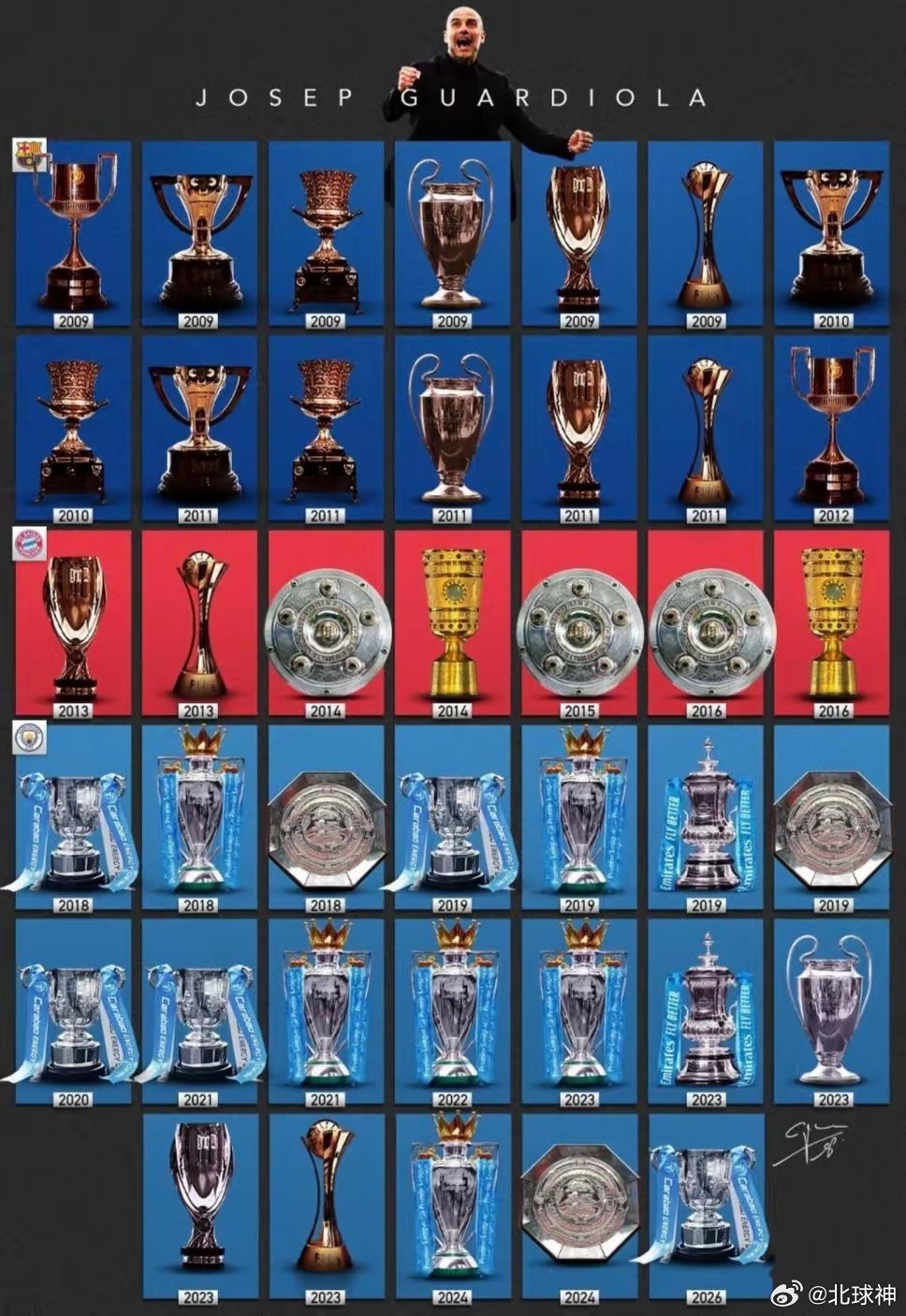 瓜迪奥拉要是离开曼城,刚好40个冠军完美谢幕,俱乐部真是没啥追求。
