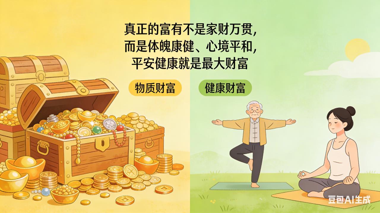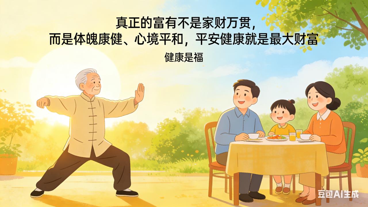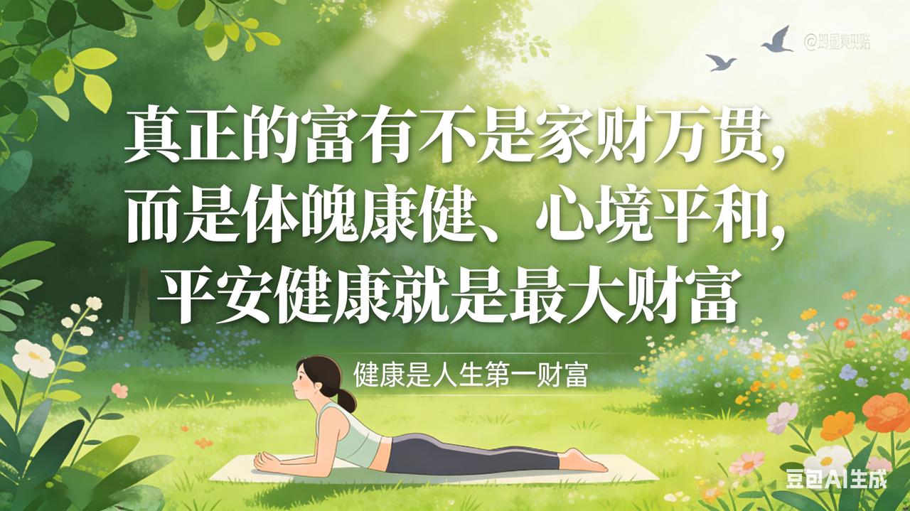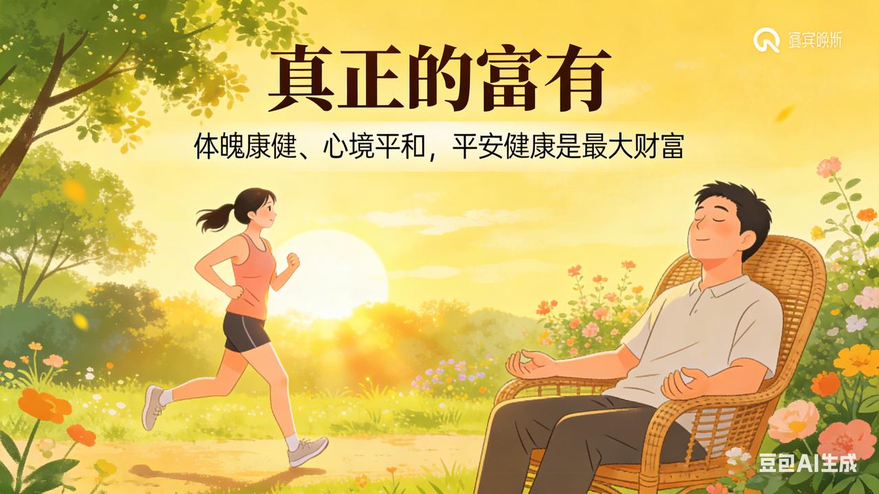 2. 真正的富有不是家财万贯,而是体魄康健、心境平和,平安健康就是最大财富。