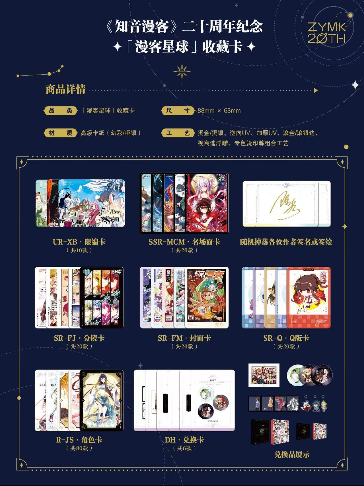 知音漫客20周年庆典 知音漫客周年庆典福利来了🧧这里随机揪俩宝各送出一包《漫客星球卡》啦!在的微博小店还有机会get√周边/书籍礼包哦~超稀有的作者亲签卡也会随机掉落,大家快来拼好运吧! 知音漫客 20周年漫客星球收藏卡盲盒