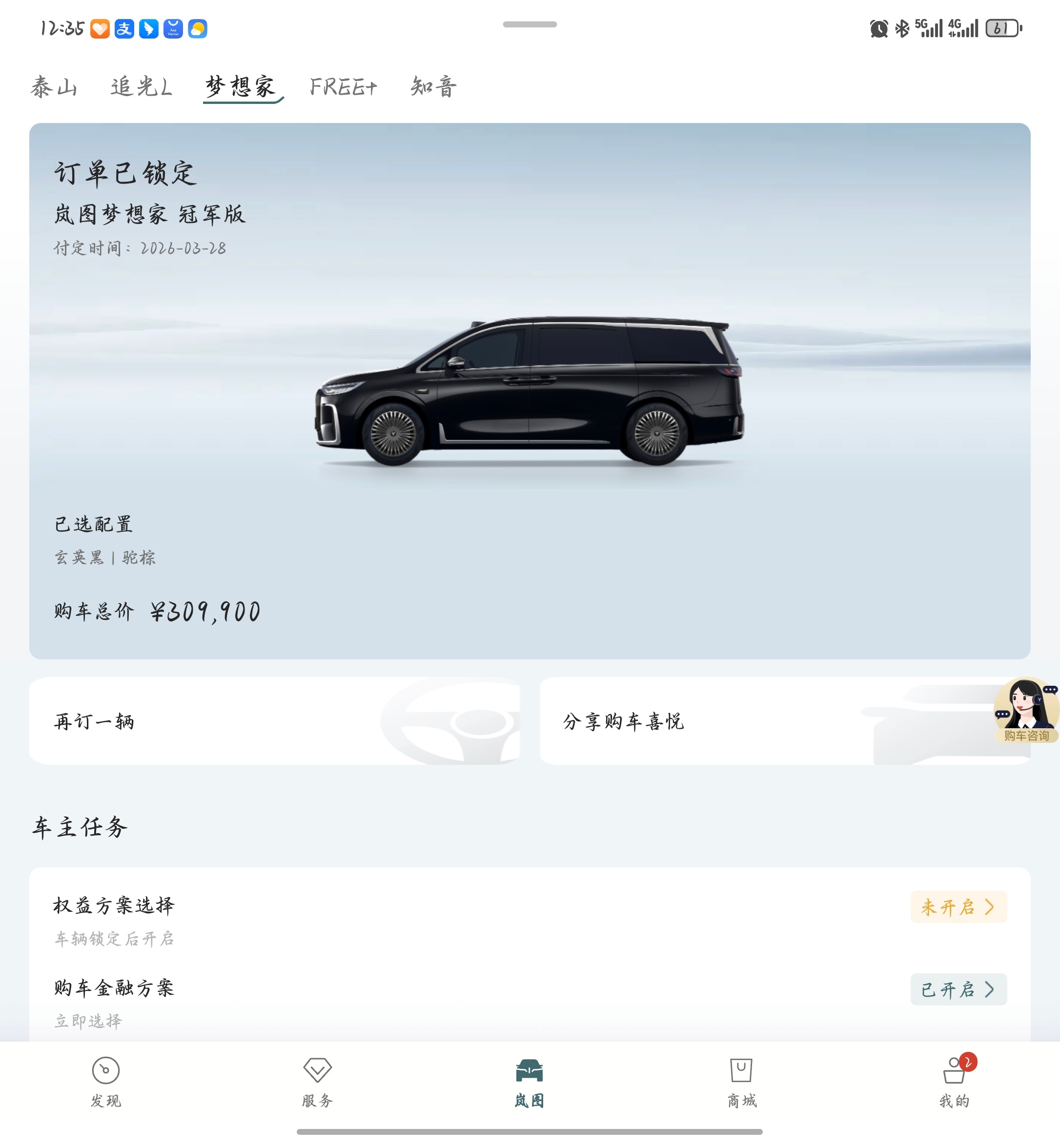 加上购置税和补贴,落地 32 万满足日常家用/商务场景,很合适!岚图梦想家