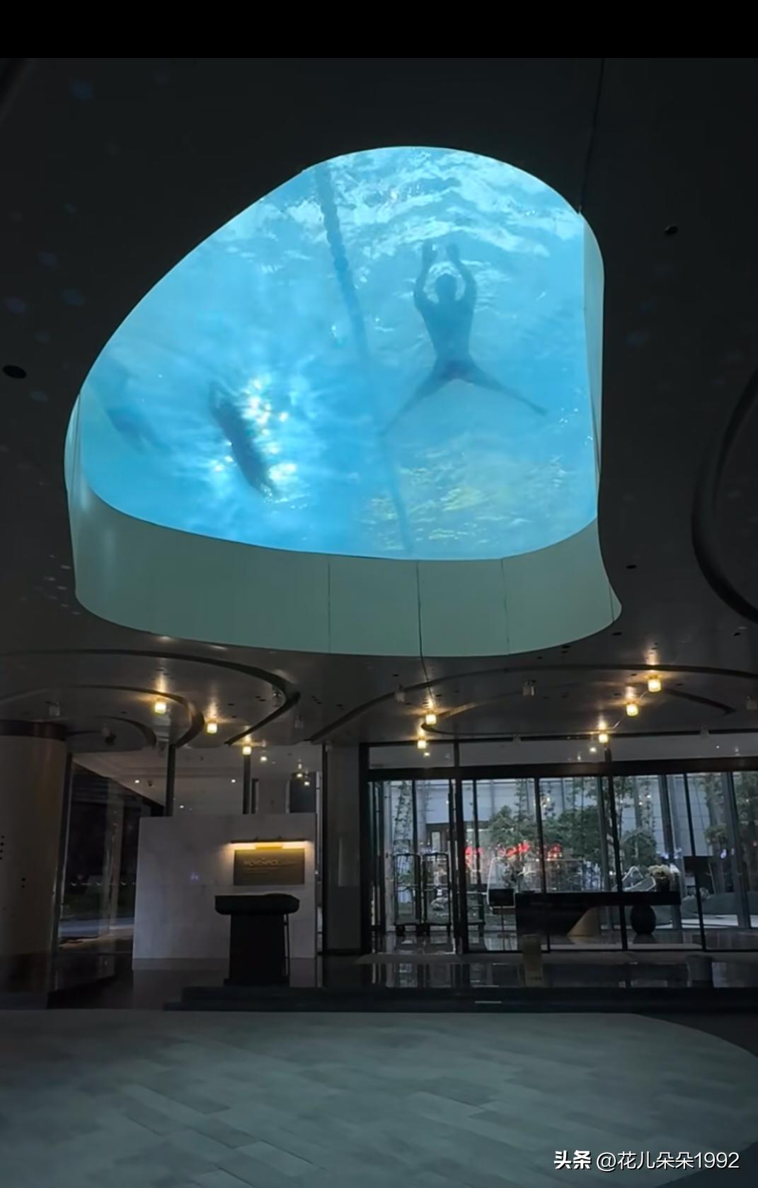 成都果然是大城市,草堂酒店的大厅上就能看见透明游泳池,就在门口,都不用进酒店