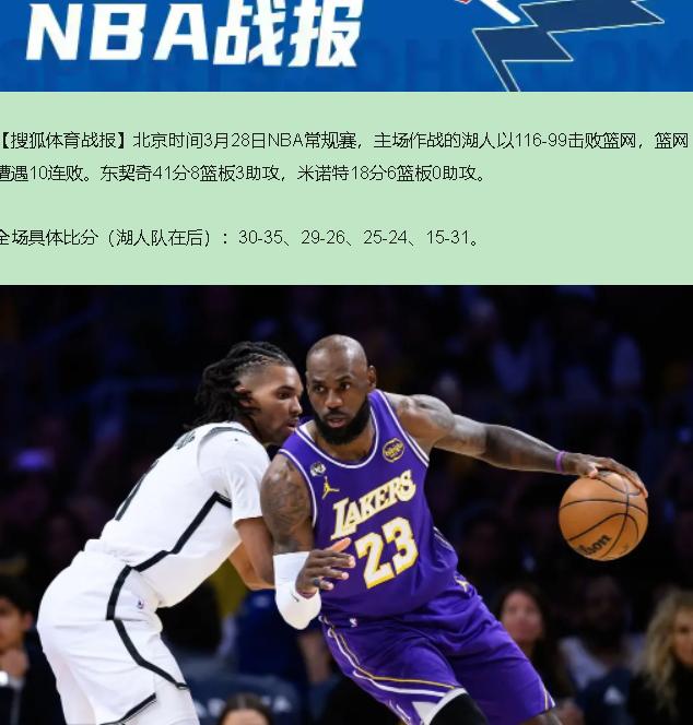 41分还能被挑刺?这剧情比德云社的现挂还离谱! 3月28号Crypto.com球馆,湖人116-99收拾了十连败的篮网。东契奇25投15中轰下41分,连续12场30+创生涯纪录——这数据搁谁身上都得吹上天,凭啥到他这儿就成"打弱旅刷分"? 真看球的都懂,前三节篮网那帮20出头的小年轻拼得凶:23岁的米诺特18分冲劲十足,24岁的威廉姆斯16分敢打敢拼,26岁的克拉克斯顿16分7篮板硬凿禁区。湖人愣是被咬到仅领先1分进末节,这哪是"稳赢局",分明是"咬牙局"! 转折点在第四节。27岁的里夫斯前三节手感冰凉——三分都投出三不沾了——末节突然觉醒连砍关键分,最终26分8篮板5助攻完成自我救赎。41岁的詹姆斯14分6篮板8助攻看着"养生",可正是他控场压节奏,才让东契奇能专心输出。这团队化学反应,比数据更值钱。 再说艾顿,27岁正当年,这场9分7篮板确实软。但你们发现没?湖人赢就赢在"有人兜底"——东契奇高分有人骂,詹姆斯低分也有人骂,可球还是赢了。这就是竞技体育最治愈的地方:不用每个人都完美,只要各自找到角色。 篮网十连败惨吗?惨。但这帮孩子打出了血性,比某些混日子的老将强多了。东契奇刷分?不,他是在证明:无论对手是谁,认真对待每一球,这才是职业球员的体面。湖人送篮网10连败