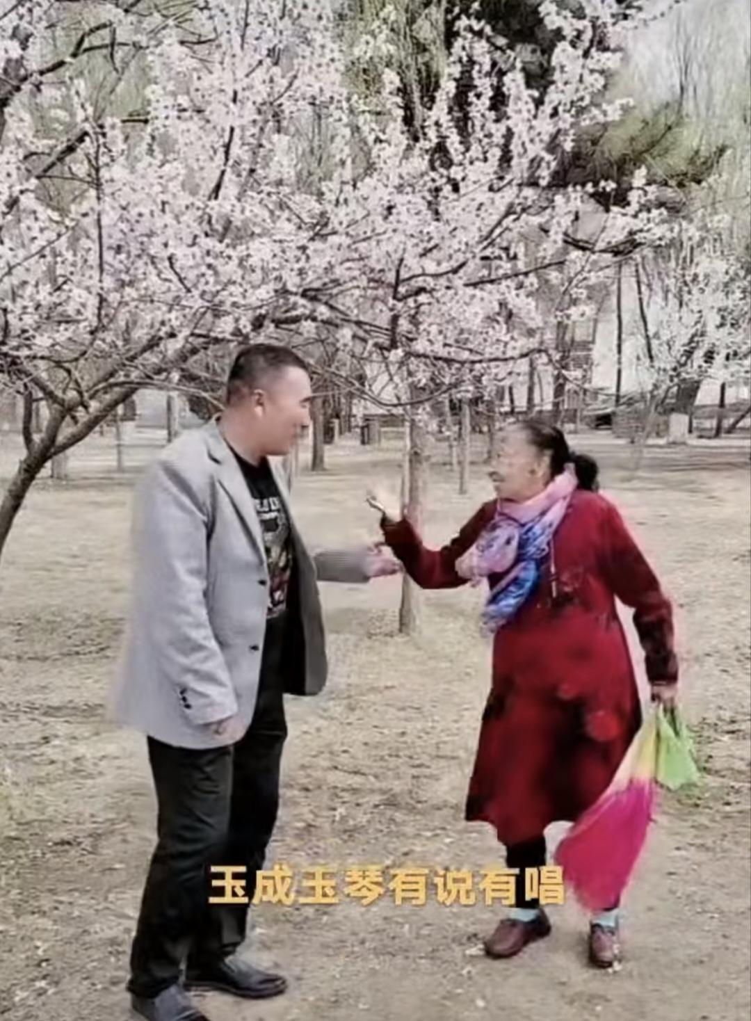 88岁的马玉琴精神头忒足!这不春天到了嘛,人家老两口在鲜花盛开的树下,边唱边舞。 尤其马大姐身着红底带图案的长裙,黑色打底裤,绣花鞋一穿,手执绿帕彩扇子,就是那么精气神满满。听听,马大姐唱啥呢?《小小的新娘花》啊!小小的新娘花,你是否还记得它,如今的我们早已经长大,你依然是我梦中的神话……马大姐声音洪亮,唱的是声情并茂。主要开心啊! 闲情逸致,太难得了。别看年龄大,活的就是年轻化。心态年轻不服老,这就是马大姐。活出了乐观,活出色彩,也活出了自我!