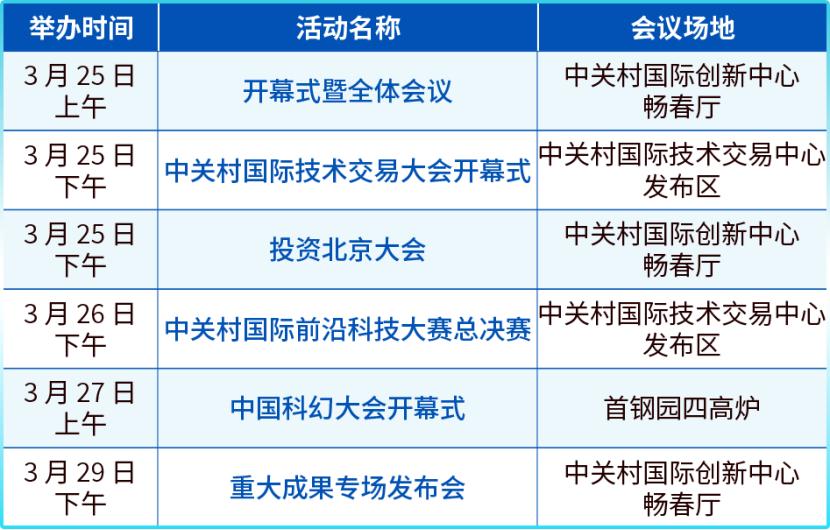 还在发愁如何高效参会?2026中关村论坛年会日程表已通过官方渠道发布,一张图帮你快速划重点。 从3月25日到29日,五大板块交替上演,既有前沿技术的思想碰撞,也有成果转化的实战对接。论坛会议板块汇聚全球顶尖科学家与产业领袖;成果发布板块集中展示高校院所的重磅创新成果;技术交易板块为技术供需双方搭建直接对接平台;前沿大赛是挖掘早期黑马项目的核心场景;配套活动涵盖投融资对接、产业沙龙、政策解读等内容。 特别提醒:中关村常设展与三山五园文化艺术展将于25日下午起面向嘉宾开放,需凭论坛证件入场。建议参会者提前下载官方日程图,标注自己感兴趣的场次,合理安排时间,让这场科技盛宴的每一分钟都物有所值。