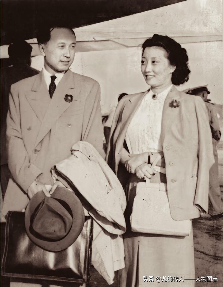 1947年9月26日,新婚的钱学森在上海乘飞机返回美国,蒋英在机场送别钱学森