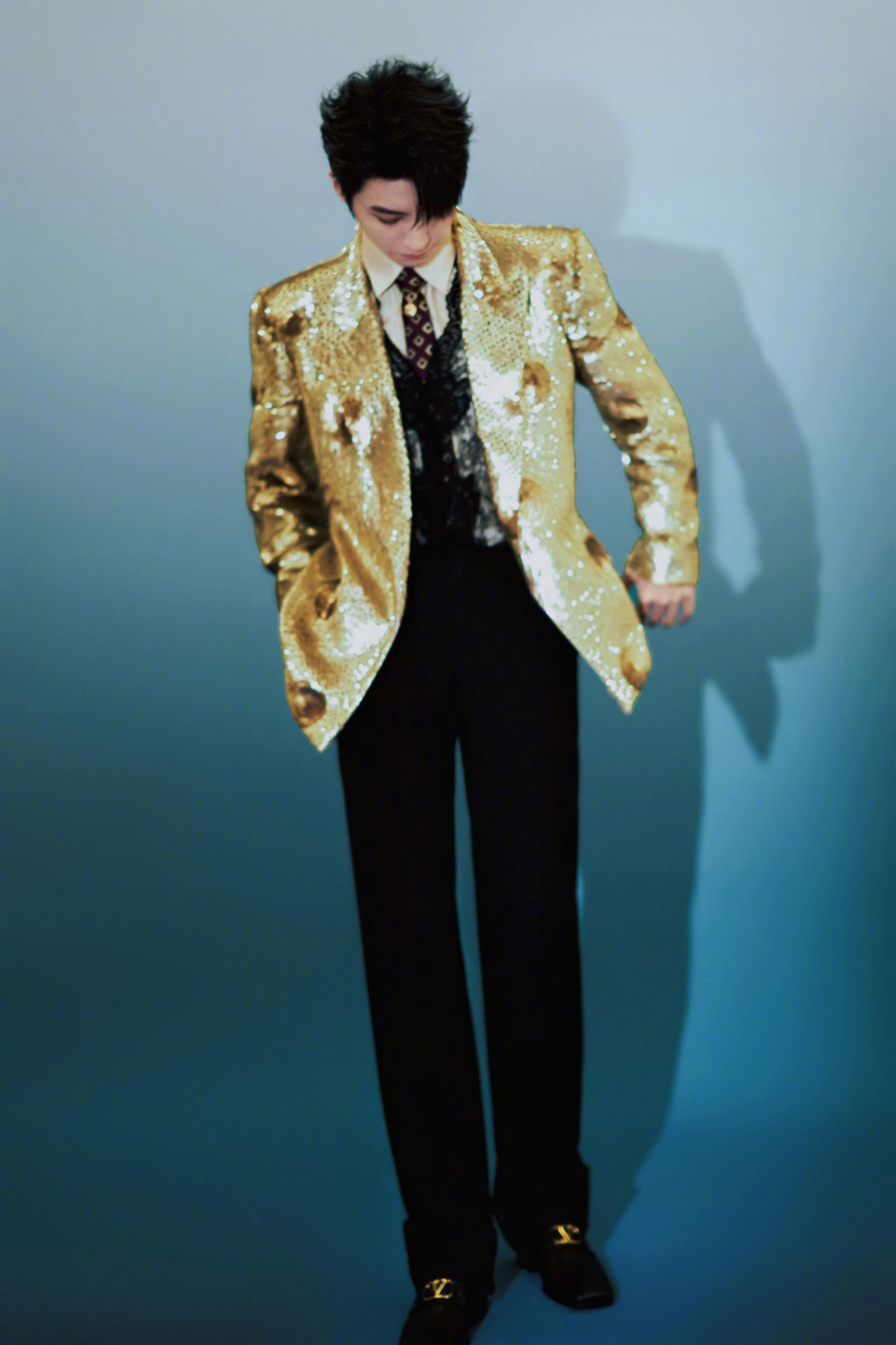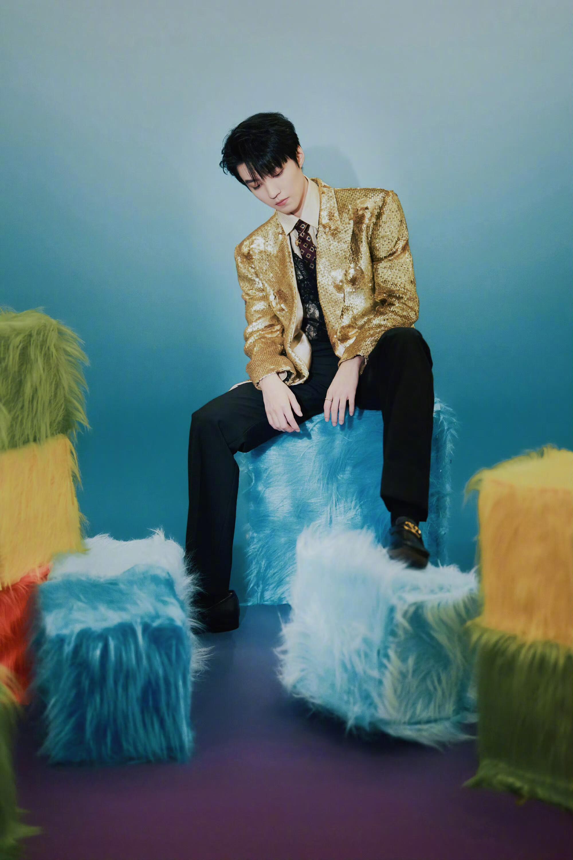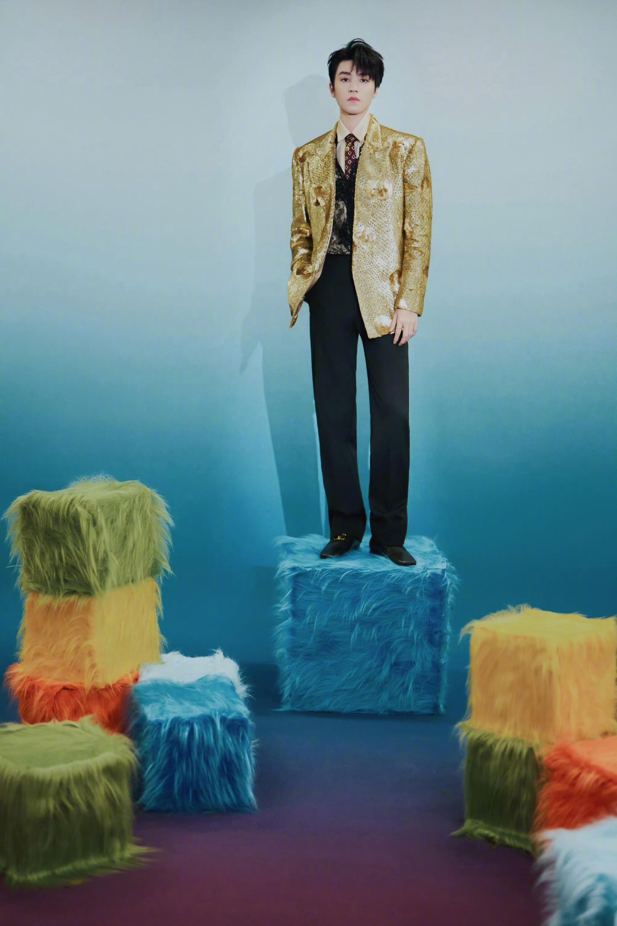 #咪咕星鲜事##王俊凯工作室出图#金色亮片西装闪到小咪心上!华丽贵气又清爽干净,帅得让人挪不开眼,燥候今晚舞台