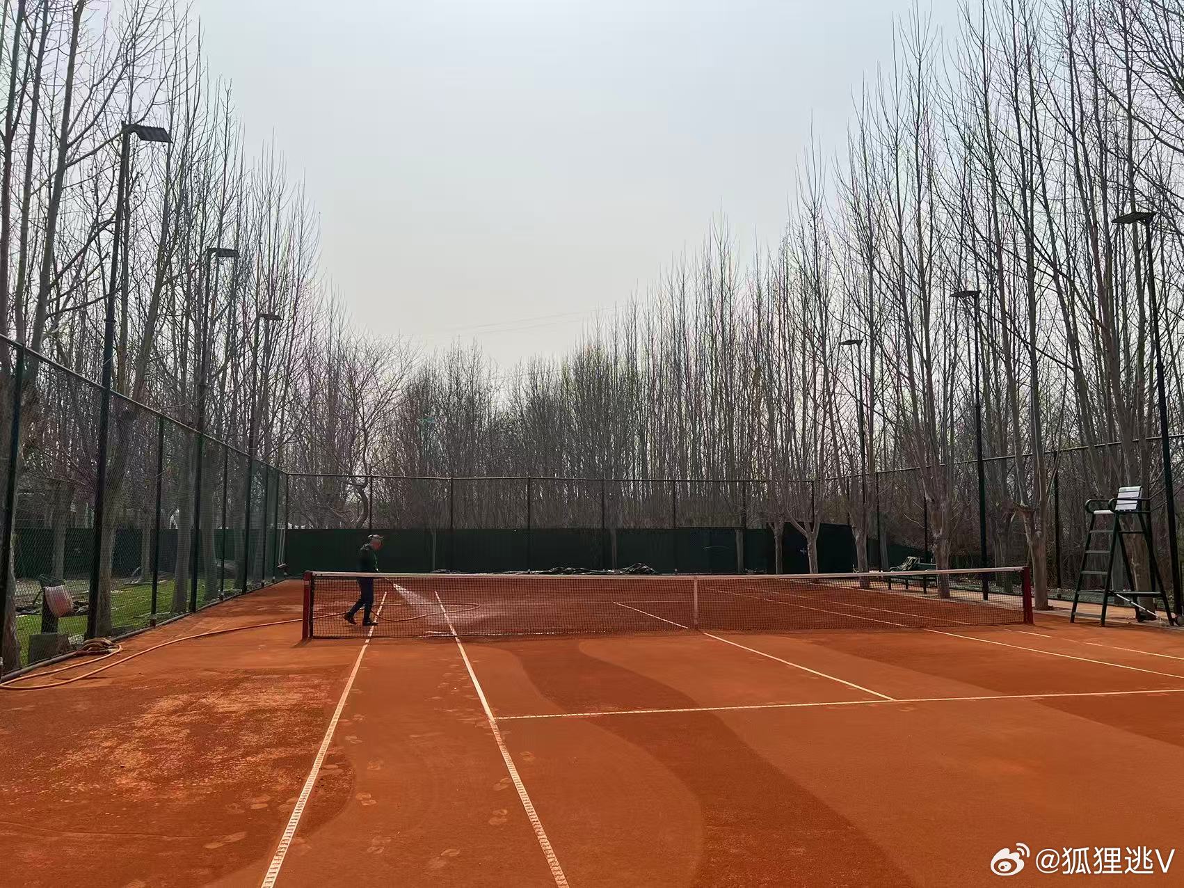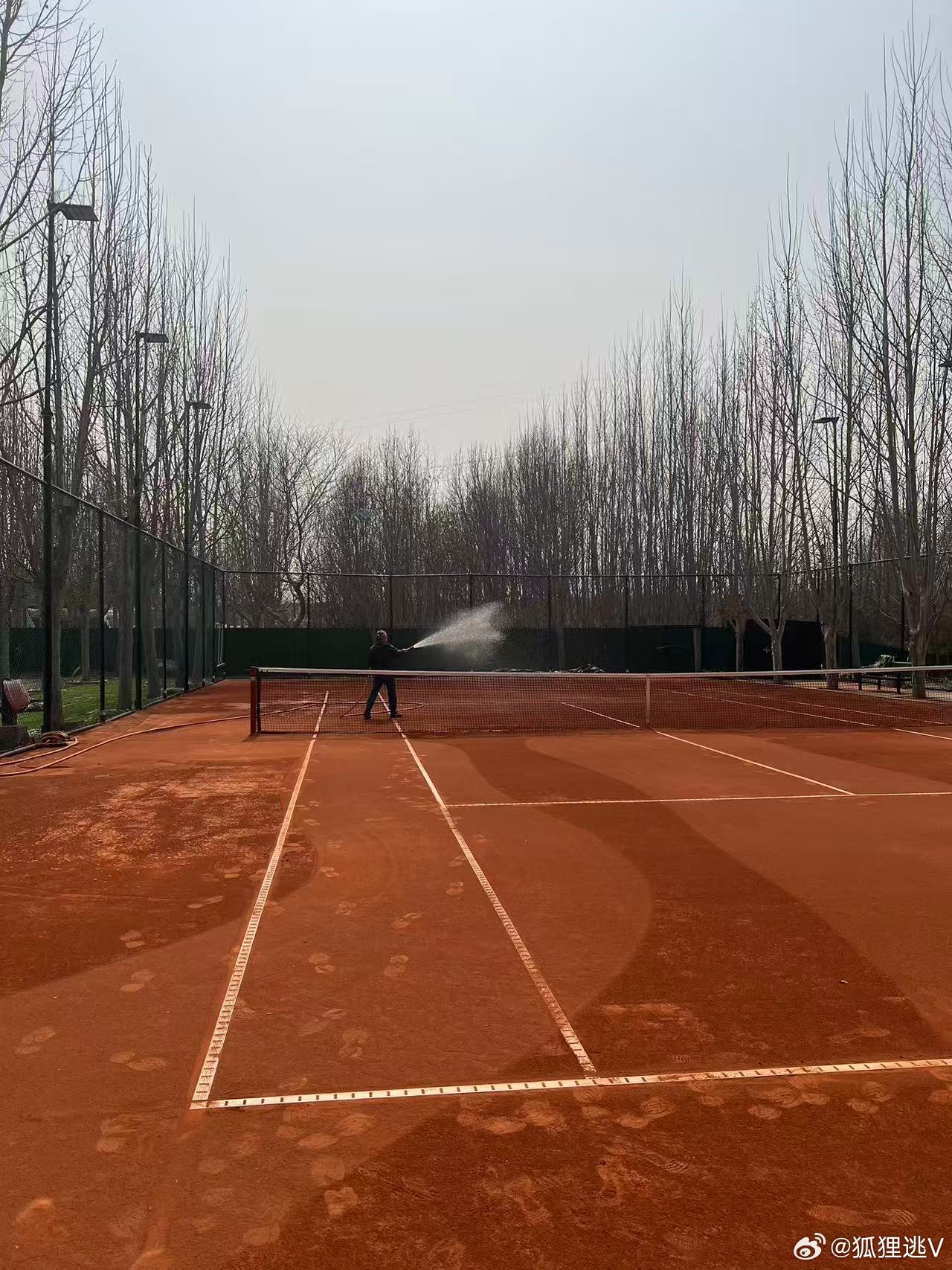 结束今日顺义凤凰红土一练。配图是训练前给球场洒水,由“北航弗里茨”张总拍摄。