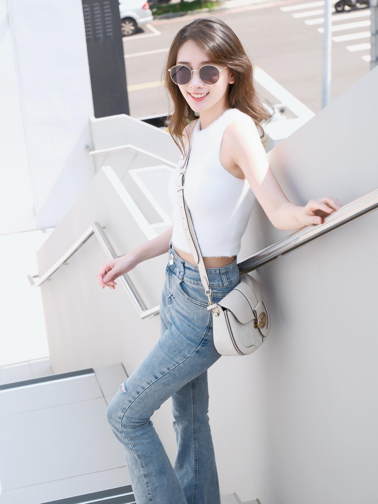 都市女孩倚栏自拍,时尚穿搭,清新自然好看又舒适的穿搭