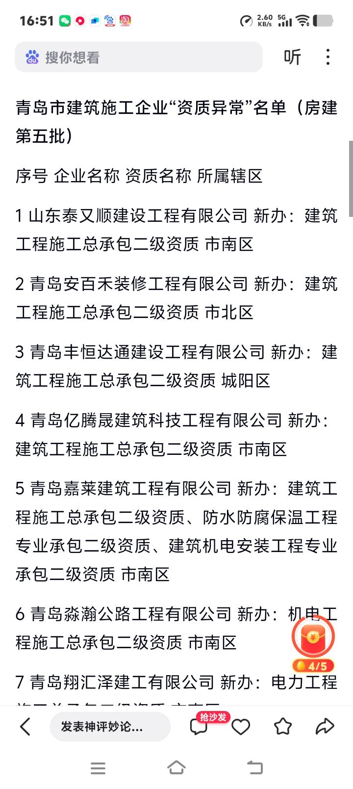 青岛住建局深夜亮剑!53家“空壳”建筑公司被揪出,你的房子还敢交给他们盖吗?市南区市北区城阳区等多地企业上榜! 当你在为新房装修奔波,为楼盘封顶欢呼时,可曾想过,那些光鲜亮丽的施工围挡背后,可能藏着一批“纸上谈兵”的建筑企业?近日,青岛市住建局一份重磅名单的公布,犹如一颗投入湖面的石子,瞬间激起了千层浪。 这份名为“房建第五批资质异常”的名单,赫然列着53家本地建筑企业的名字。从市南到城阳,从黄岛到即墨,覆盖范围之广令人心惊。它们被查出的问题出奇一致:注册类人员不达标。简单说,就是这些手握施工资质、承揽各类工程的公司,连最基本的专业技术人员配置都没凑齐! 这不禁让我们脊背发凉。这些“资质异常”的企业,过去可能正参与着你家小区的建设,负责着市政道路的施工,甚至承建过学校的教学楼。没有足够的技术负责人和工程师坐镇,工程质量如何保障?施工安全谁来负责?这不仅仅是名单上的一串字符,更是悬在无数业主和市民头顶的“达摩克利斯之剑”。 深入剖析,这种现象背后是行业长期存在的“资质挂靠”潜规则。一些企业为了快速拿到项目,临时拼凑人员满足审批,一旦资质到手,那些注册工程师便“神隐”。他们玩的是一场危险的“空手套白狼”游戏,用最低的成本撬动巨大的工程市场,最终将潜在的风险转嫁给社会和每一个消费者。 站在普通购房者和市民的角度,我们感到的不仅是愤怒,更是深深的无助。大多数人一生可能只买一套房,我们掏空六个钱包,赌上未来三十年,换来的应是安居乐业的港湾,而不是一个由“皮包公司”打造的、隐患未知的建筑产品。这份名单撕开了一道口子,让我们看到了繁华建筑市场下暗藏的冰山一角。 值得肯定的是,青岛住建部门的这次主动“亮剑”和公开曝光,是一次有力的监管升级。它传递出一个清晰信号:靠弄虚作假混迹市场的时代正在过去。动态核查、“双随机、一公开”,这些措施就是要让监管长出“牙齿”,让违规者无处遁形,从而净化市场,保护每一个人的切身利益。 当然,公布名单只是第一步。公众更期待看到后续的雷霆手段:这些企业是被限期整改,还是直接被清出市场?已完工的项目是否需要重新评估?未来的监管如何形成长效机制,杜绝“今天整改,明天复发”?这需要监管部门给出更清晰的答案和更坚决的行动。 建筑,是凝固的艺术,更是安全的基石。它承载的不是砖瓦水泥,而是千家万户的幸福与生命。这份异常名单是一记响亮的警钟,提醒我们所有人:对于家园的建设,我们必须较真。只有让每一个环节都暴露在阳光之下,才能让“安居”的梦想,真正安全落地。 (来源:青岛市住房和城乡建设局官方通告及乐易深度相关报道) 建筑安全 行业乱象