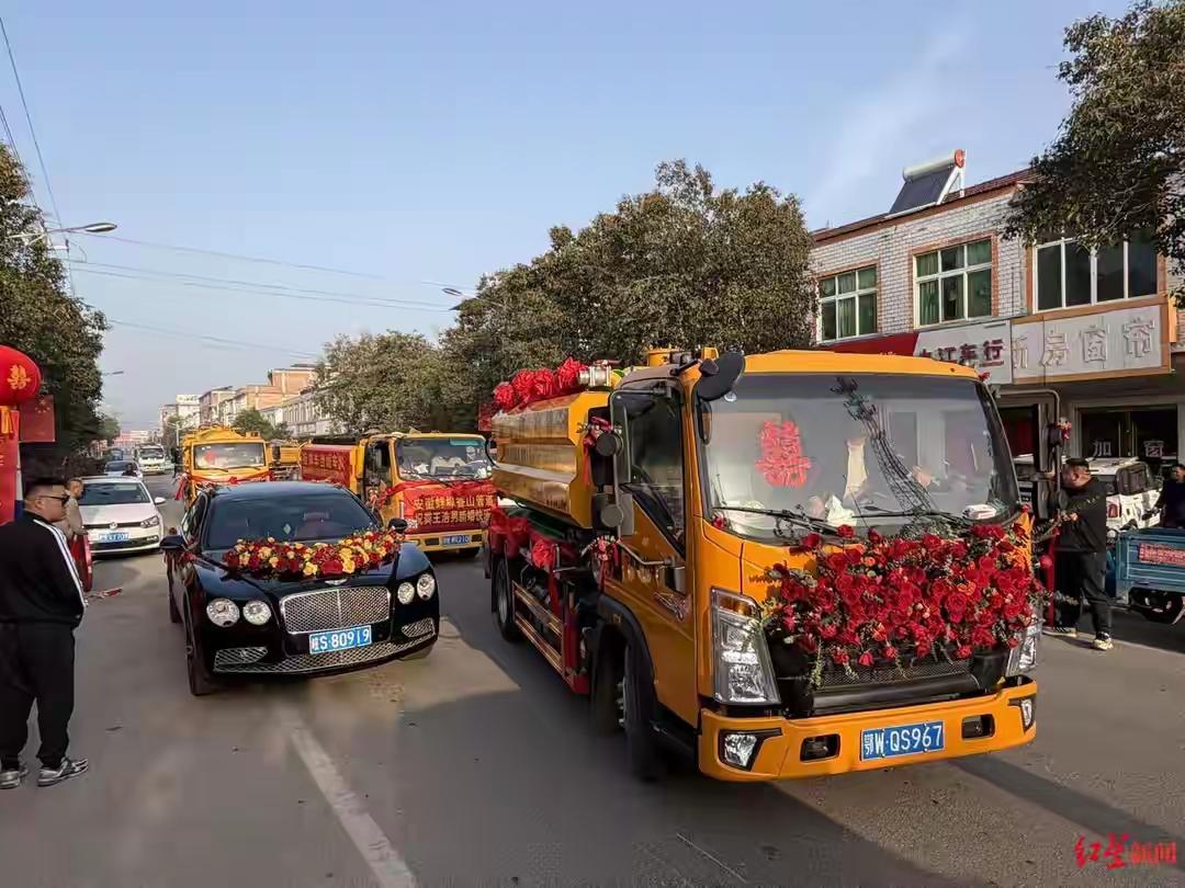 不追求奢华,不追求排场,用富含职业特征的吸粪车作婚车队,浪漫又温馨!!! 2026年3月28日,安徽淮北举行一场浪漫的婚礼,9辆吸粪车加上6辆轿车 组成了婚车车队迎娶新娘。新郎潘浩男是一名“95后”浙江小伙,4岁随父到浙江生活,他的父亲在浙江慈溪从事粪便清运已有20多年。本科毕业后经历过创业失败痛苦,由于工作的不稳定选择子承父业加入粪便清运大军。“家里一开始反对觉得我不该再干这又累又脏的活”但他坚持了一年,父母终被说动。对于掏粪工作 小伙子自豪地说:“我们虽然干的是最脏最臭的活, 但我们挣的钱很干净。相比其他行业,我们的工作也很稳定”。 同为95后的新娘李女士,居住在与新郎老家相距两个小时车程的安徽蒙城县。新娘曾当过幼儿园老师,后辞职奔赴浙江。 “我觉得这样的车队挺浪漫的,也不觉得浩男从事的工作和其他工作有什么不一样,靠双手劳动赚钱,能踏实过日子,就是我最看重的。”真诚、朴实的话语,道尽新娘对新郎的喜爱。 放弃世俗的偏见,拾起生活的真谛,不是所有人都能做到的。希望未来有更多人脚踏实地,共赴爱情之约!!!