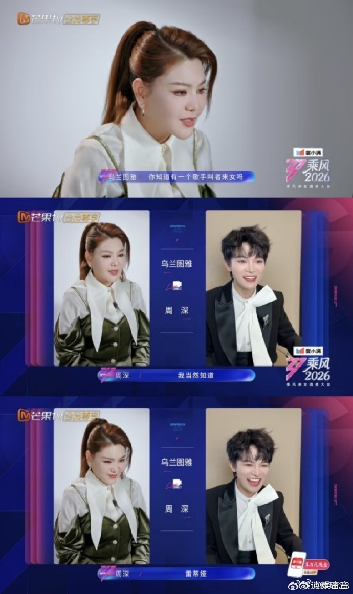 周深你好响周深综艺感太强,特别是此次和乌兰图雅的互动,两个人也是欢乐源泉,两个人这样的表现也是堪称名场面周深贴脸乌兰图雅
