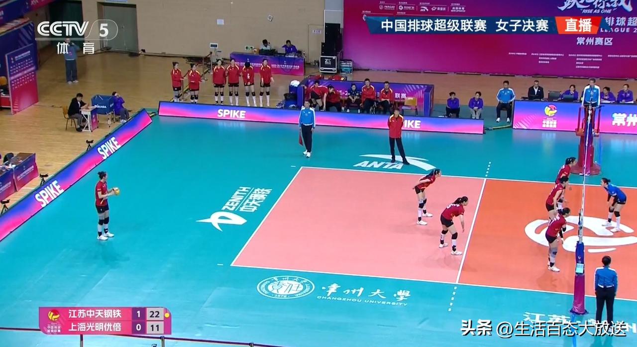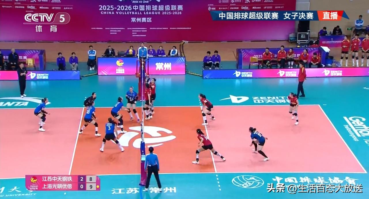 张常宁携带妈妈现场观战,坐镇主场为江苏女排加油,中国女排超级联赛冠亚军决赛首回合,卫冕冠军江苏女排准备充分25/16,25/16连胜两局,目前大比分2-0领先于上海女排。吴梦洁,唐欣,周页彤进攻有保障,杨佳,万梓玥拦网手型摆的硬,张籽萱传球隐蔽,倪非凡防守出彩,江苏女排七仙女各个势头高昂,反观上海女排重点人范赖克进攻低迷,发球失误多,沃隆科娃的跳发也没有冲出来,仲慧一传差被换下,高意背快,陈厚羽的快攻也多次被防起来,前两局上海女排全队简直被江苏女排打懵了 关键的第三局,没有退路的上海女排势必会全力以赴,蔡斌在用人方面有哪些调整呢,让我们一起看看吧,上海队能否会扳回一局呢?