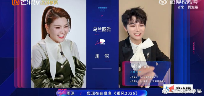乌兰图雅感谢周深模仿自己出圈谁懂啊!乌兰图雅连麦周深,感谢他“神模仿”让自己火出圈!乘风2026