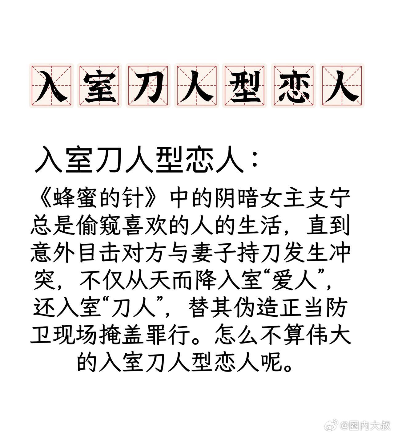 用血腥爱情故事打开蜂蜜的针爱意燃成灰烬,执念化作利刃。《蜂蜜的针》配血腥爱情故事适配度爆表。支宁的暗恋从偷窥开始,以杀戮收尾,蜜蜂般伤人亦自亡,在爱恨里失控沉沦。旋律戳心,剧情带感,撕开爱情最残忍的真相,让人窒息又上头。