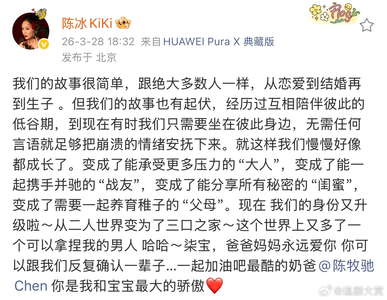 陈牧驰陈冰官宣结婚生子OMG陈牧驰陈冰官宣结婚生子了,恭喜祝福!