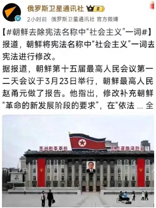 朝鲜此次修宪,将宪法名称中的“社会主义”一词移除,表面看是文字微调,实则是对自身发展阶段与外部环境的精准回应。 最近朝鲜修宪的消息引发了不少讨论,最受关注的是其对宪法部分条款进行修订、优化表述侧重,并非移除 “社会主义” 一词 —— 事实上朝鲜宪法名称始终为《朝鲜民主主义人民共和国宪法》,核心的社会主义属性从未改变。 不少人一看修订消息就犯嘀咕,难道朝鲜要改弦易辙,放弃之前的发展道路?其实真不是这么回事,这看似只是一些表述上的微调,背后藏着的是朝鲜对自身发展阶段的清醒认知,更是对外部环境变化的精准回应。 说白了,就是朝鲜已经告别了过去那种艰难求生、一门心思搞防御的日子,正式迈入既要守好国家安全,又要全力搞经济、让老百姓过好日子的全新阶段。 这一修订可不是随便定的,是在 2023 年朝鲜第十五届最高人民会议第一次会议上正式通过的,这也是该国自 1972 年确立现行宪法以来,一次重要的条款优化调整。 可能有人会觉得,条款有调整,是不是国家的根本方向就变了?其实不然,宪法正文中,那些体现社会主义本质的制度内容一个都没删,国家的根本发展方向和体制基础,压根没有出现任何实质性改变。 过去几十年,朝鲜过得并不容易。长期的国际制裁,让这个国家不得不把大部分精力放在国防建设上,毕竟在复杂的国际环境里,只有先守住自己的家园,才能谈发展。 那时候,朝鲜的核心任务就是筑牢防御防线,全力保障国家主权和安全,哪怕日子紧一点,也要先把 “保命” 的本事练硬。 那些年,朝鲜一门心思推进国防建设,完善防御体系,就是为了不被外部势力欺负,让老百姓能有一个安稳的生存环境。 而现在,情况慢慢变了。外部环境逐渐缓和,一些国家开始解除部分制裁,朝鲜也敏锐地抓住了这个机会,悄悄调整了发展重心。 不再是只盯着防御,而是既要守住国家安全的底线,又要全力推动经济建设,切实改善老百姓的生活。 这几年,朝鲜的变化其实很明显,比如在农业领域,大力推进现代化种植,引进新的农业技术,扩大灌溉面积,粮食产量一年比一年稳步提升,老百姓的温饱问题得到了更扎实的保障。 在轻工业领域,新建了不少日用品工厂,生产的衣物、食品、家电越来越丰富,不再像以前那样物资相对匮乏。 城市里也能看到不少新变化,新建的居民楼拔地而起,不少家庭搬进了宽敞明亮的新房子,社区里的医疗设施、教育设施也在不断完善。 朝鲜并没有放弃社会主义的核心内核,只是优化了宪法表述侧重,不再刻意强调某种标签,而是用实际行动去践行,把重心放在了让老百姓真正受益上。 其实朝鲜这次修宪,也是对自身发展阶段的精准定位。过去是 “求生存”,现在是 “求发展”;过去侧重防御,现在兼顾安全与民生。这种调整,既符合朝鲜当下的实际情况,也顺应了国际社会和平与发展的主流趋势。 毕竟,对于任何一个国家来说,老百姓的幸福生活才是根本,只有经济发展起来了,民生改善了,国家才能真正稳定,才能在国际上站稳脚跟。 可能有人会疑惑,为什么偏偏在这个时候做这样的调整?道理很简单,外部环境缓和给了朝鲜发展经济的机会,而经过这么多年的国防建设,朝鲜已经有足够的底气去兼顾经济和安全。 不再需要靠强调某种标签来凝聚共识,而是靠实实在在的发展成果来让民众安心,让外界看到一个不一样的朝鲜。 而且,这种调整也传递出一个明确的信号:朝鲜不再是那个只能艰难求生、全力防御的国家了,现在的它,既有能力守住自己的家园,也有决心、有底气搞经济、惠民生。 宪法条款的微调,本质上是一种务实的选择,是朝鲜根据自身发展和外部环境,做出的最适合自己的决策。 它没有否定过去,而是在继承国家根本体制的基础上,更好地面向未来,让国家发展更稳、更实,让老百姓的日子过得更好。 说到底,朝鲜这次修宪,从来不是什么 “改弦易辙”,而是一次贴合实际的务实调整。表面上是一些表述的变化,实则是发展思路的转变,是从 “生存优先” 到 “安全与发展并重” 的跨越。 对于此事,你有怎样的观点?欢迎在评论区留下你的看法。