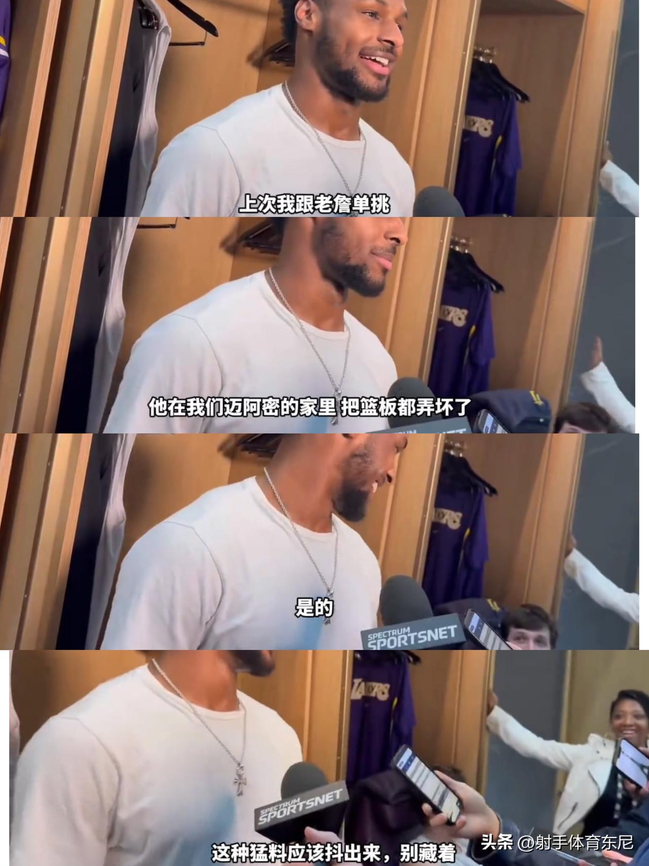 布朗尼自曝猛料,在迈阿密家里的篮球场,自己曾和詹姆斯打过一场1对1。詹姆斯由于输了比赛,把篮板都弄坏了。 1对1连布朗尼这种水准的都赢不了?现在能理解詹姆斯为什么一直不敢上场1对1单挑了吧!水平是真的菜! 布朗尼这逆子,这种令詹姆斯丟脸的事情可以拿出来公开说的吗?想当初,詹姆斯被隔扣都要现场没收手机和攝影装备,就是怕这种丟脸的事被传开。布朗尼倒好,自爆家丑。[我想静静][我想静静]