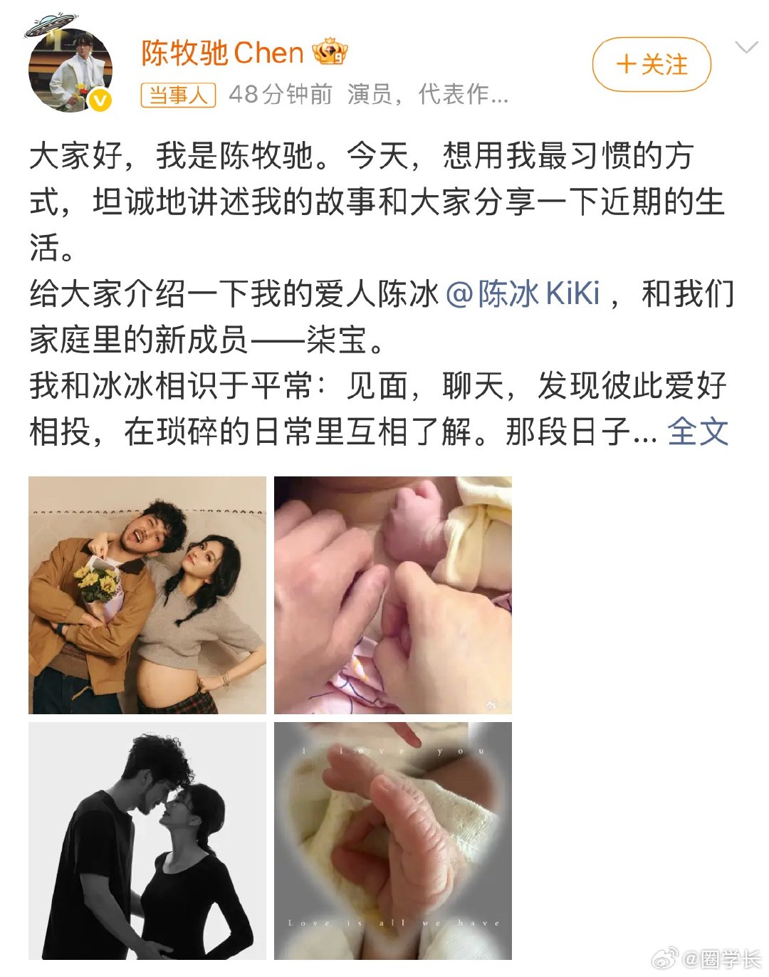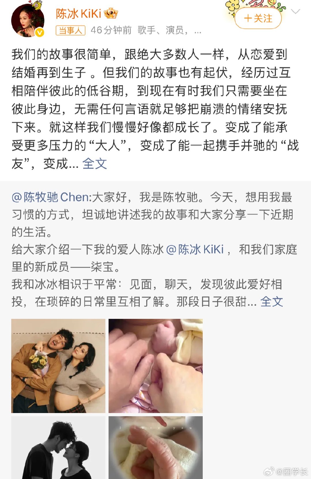 陈牧驰陈冰结婚生子两人大大方方官宣,一路走来也挺不容易。而且俩人真的很般配~真心