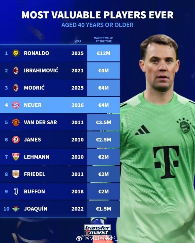 第4名:诺伊尔 —— 2026年,市场价值 400万欧元