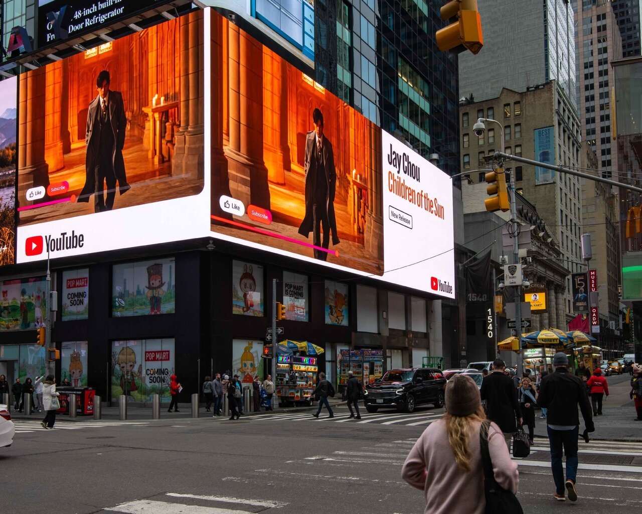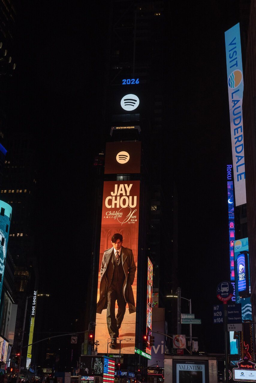 特别的是,Spotify、YouTube Music、QQ、酷狗等四大平台的看板同时出现在纽约时代广场Time Square,同步庆祝周杰伦「太阳之子」专辑的诞生,歌迷纷纷拍下耀眼的巨幕看板,周杰伦也不忘跟粉丝说:「有看到记得@ 我」。
