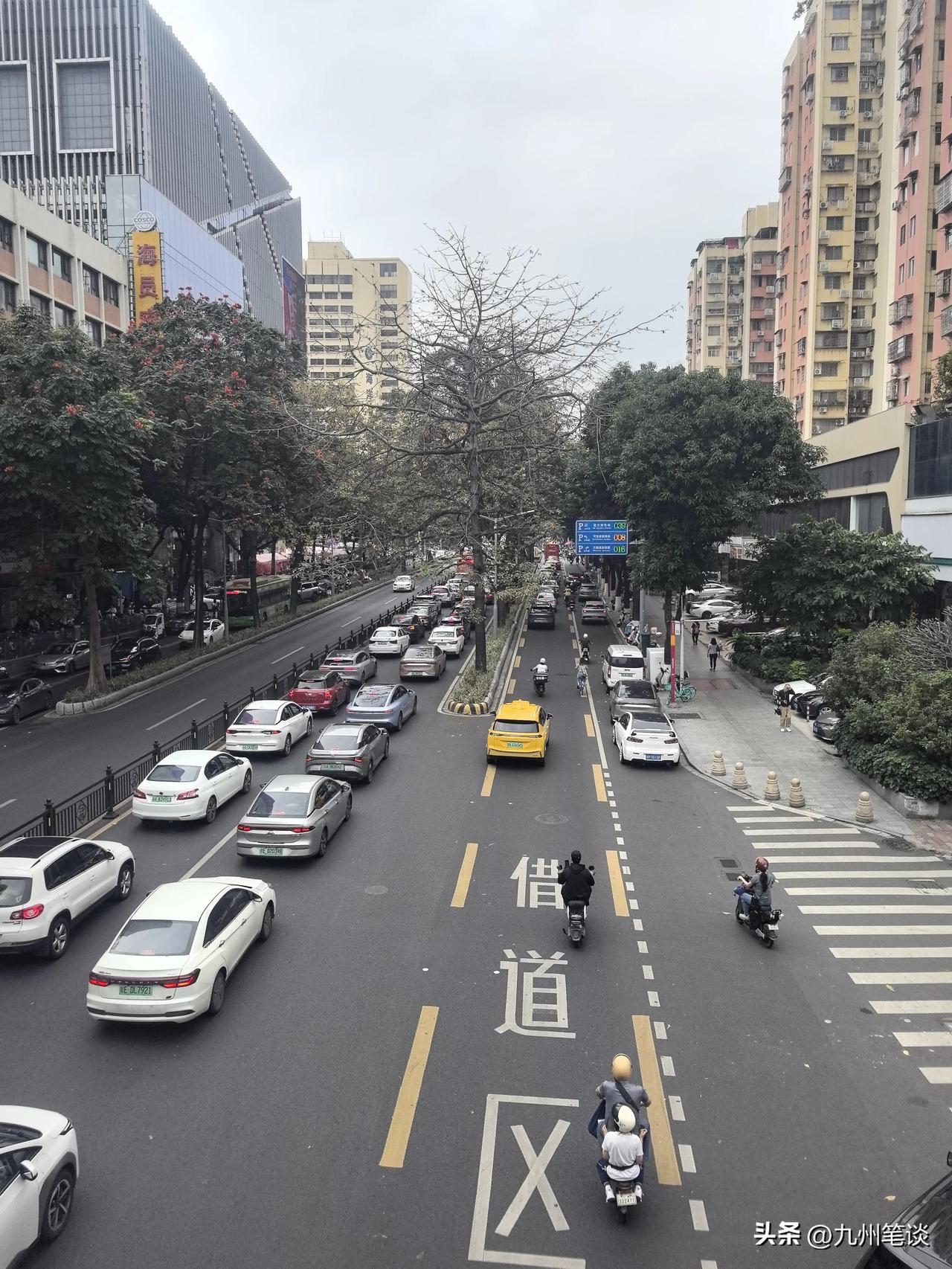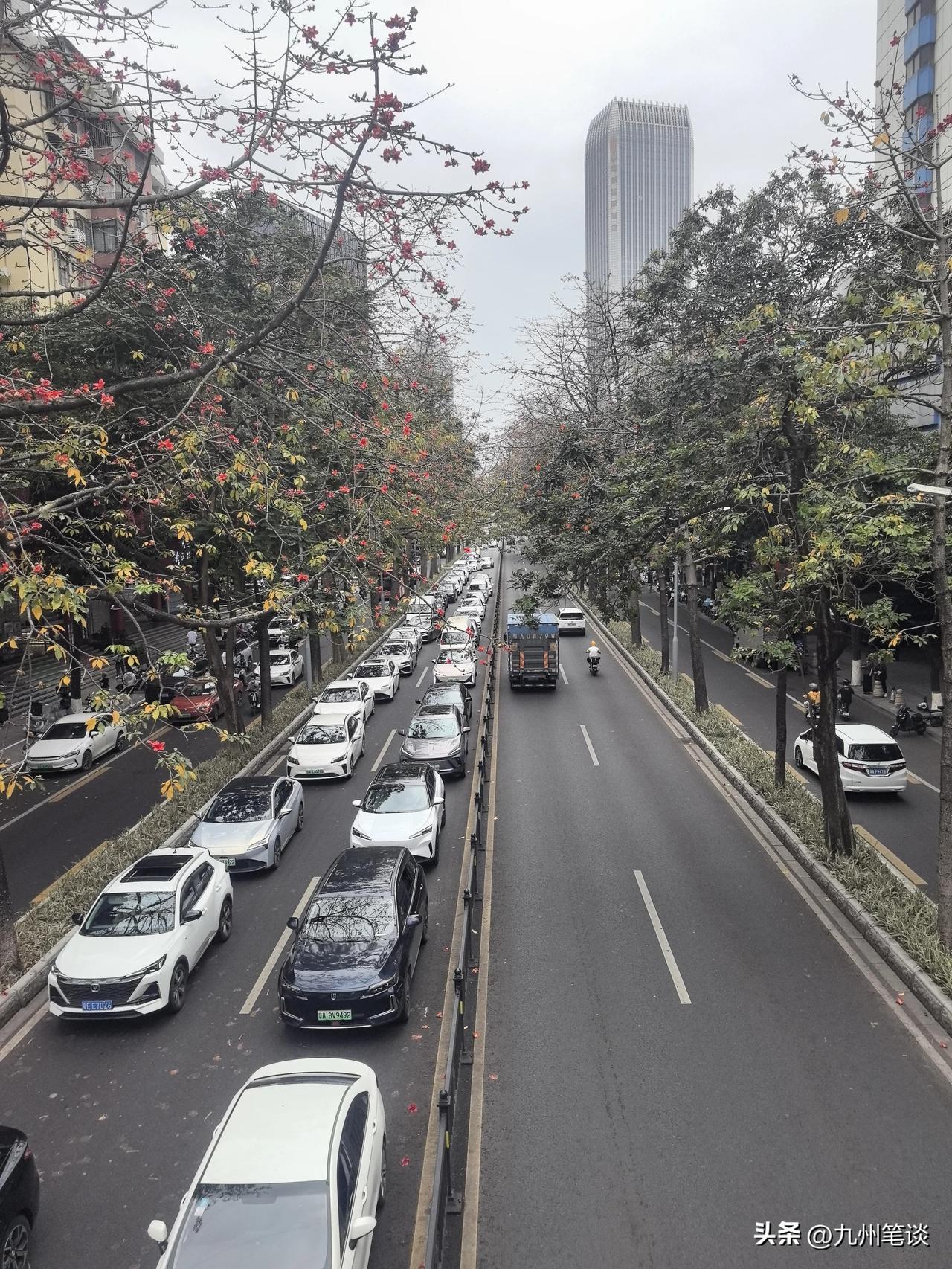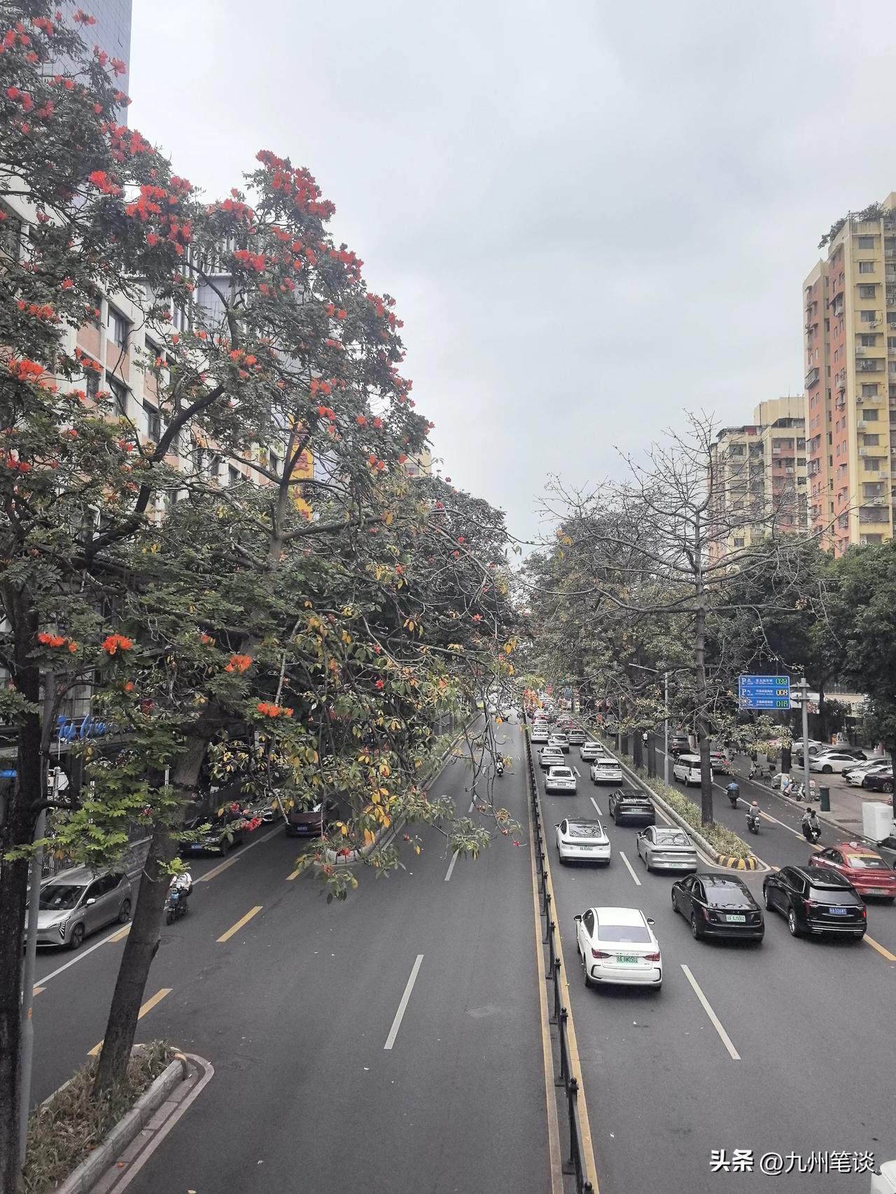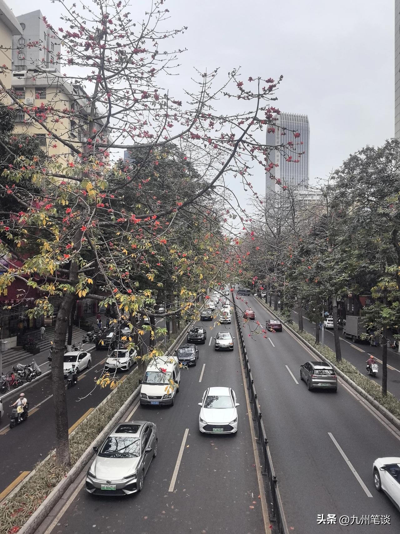 英雄花开英雄城,木棉绽放花正艳! 抓住春天的尾巴,木棉大道美无边。 这条大道两边都是数十年的高大木棉树,花开时节,一路红火。 夏天枝繁叶茂,也是绿树成荫,变身林荫大道。没有暴晒,无论是开车还是骑行,都很舒服。 堪称广州样板主干道,还保留了广州为数不多的辅路,非机动车道如果能与机动车道隔离开就更好了,要么变成机非共享车道也可以。 现在非机动车道与机动车道之间没有隔离栏,非机动车道上停满了机动车。这也是私家车和电动自行车爆发式增长带来的巨大挑战。道路压力大,行驶缓慢,停车贵,停车难,导致违停严重。 广州中心城区,承受了太多太多压力。 但人们还是愿意挤在中心城区,方便与拥挤也是难两全。