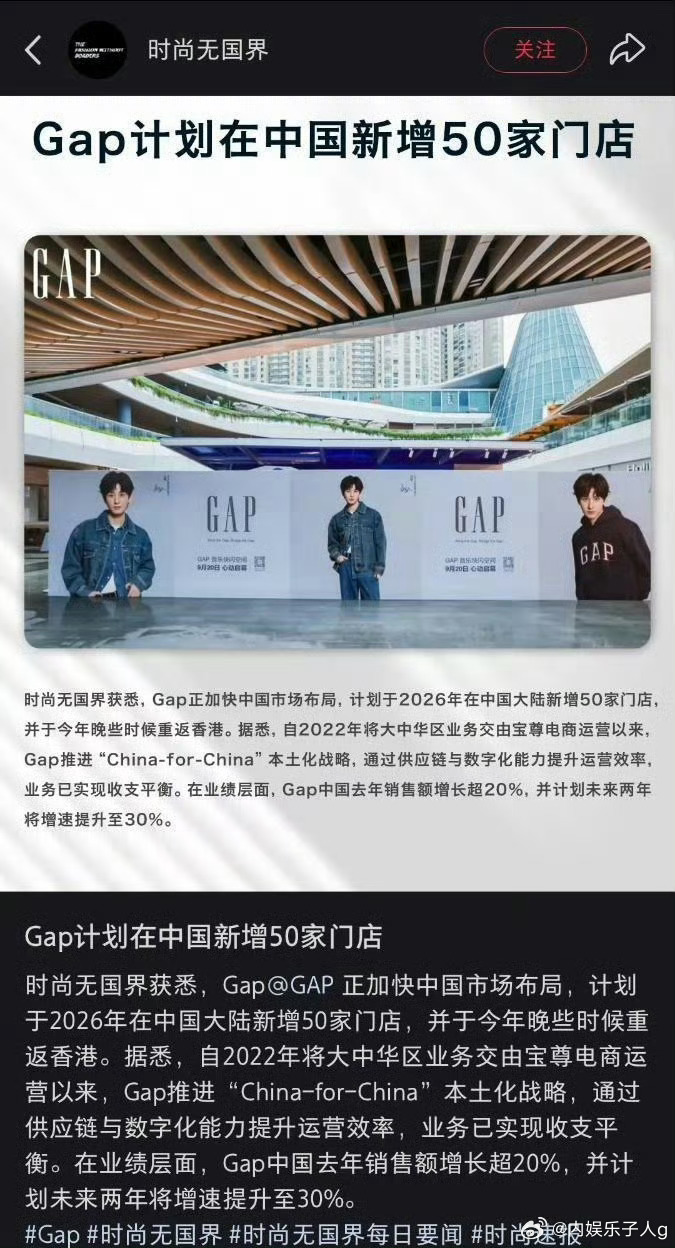 GAP从25年9月官宣成毅为品牌代言人开始,成毅强大号召力不仅仅是让品牌Q4迎来里程碑式的盈利,更夸张的是,在这个闭店潮的经济环境下…成毅的商业号召力和泛人气还能助力品牌拓展门店,真的太牛了……商业价值好强,901名不虚传