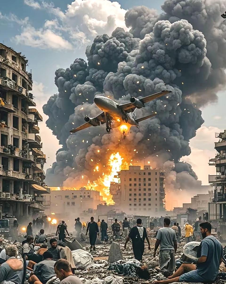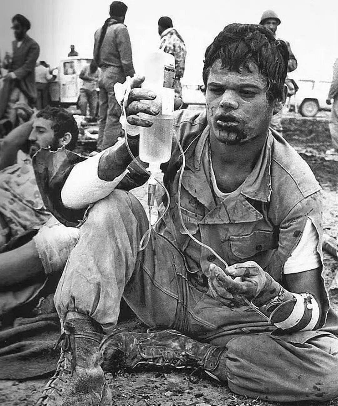以色列轰炸的废墟上,这一位少年、一位青年在思虑着什么呢 ? 少年—— 蓝天白云,阳光明亮,然而少年身处的是人间地狱。他右手右腕缠裹着绷带,哀伤地望着断壁残垣,瓦砾碎片。他眉头紧锁,鼻息酸楚,茫然孤苦伶仃!他的家在哪里?他的父母亲人们在哪里? 青年——他坐在废墟地上,身后是救助的人和车的形影。他右侧的一个人也受伤仰卧在地上。看来他被烧伤很重,面部有烧痕,双手的皮像要脱落似的。他左臂的衣袖是剪开的,肯定是伤后没法脱下来的应急措施 !他双臂包扎,都在输液,大约是防止皮肉再感染。他面部神态紧缩,沉滞地看着输液瓶。他仿佛在想:我这一生废啦 !是谁废掉了我,是谁 ? 以色列——以厉色惨烈中东。 ———————————