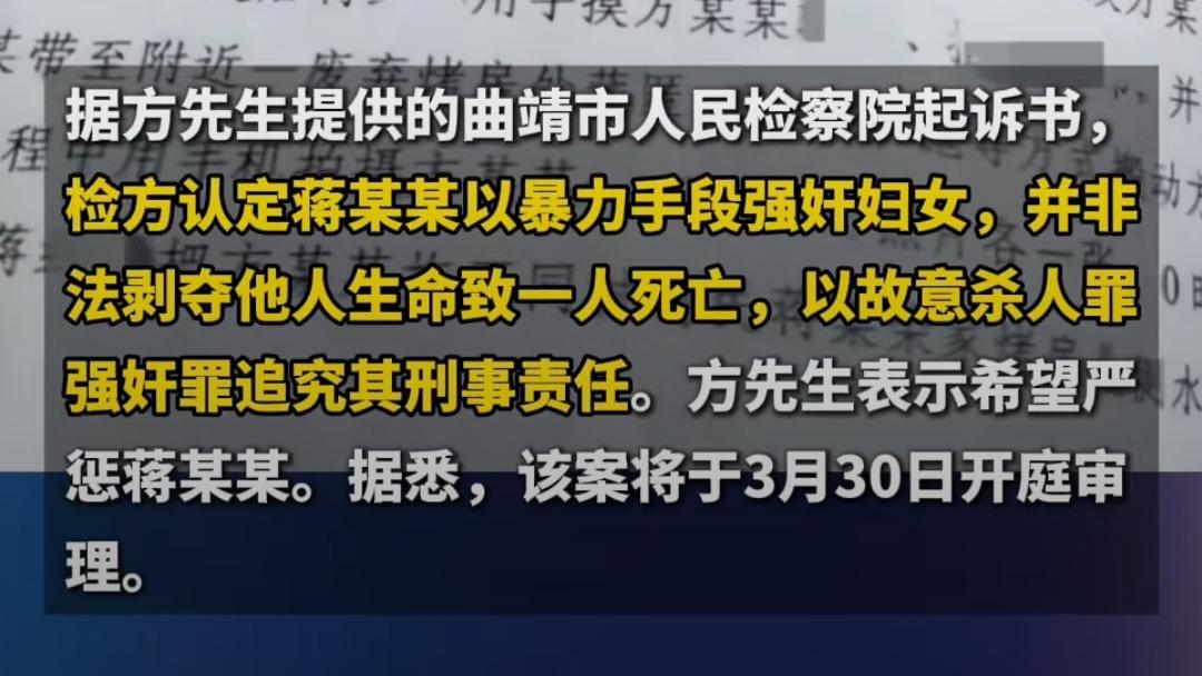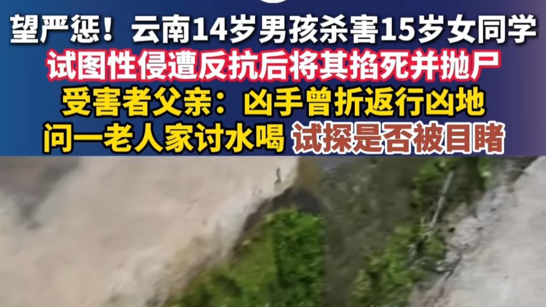必须严惩!从案发前后蒋某某的各种行为分析,他不只是一名仅有14岁的少年,更是一个既有心机,又冷静、残忍的人。 2025年7月7日凌晨,云南曲靖一名年仅15岁的初中女生方某涵,在回家的路上被人残忍杀害。嫌疑人不是别人,正是她14岁的男同学蒋某某。 事发前一天的7月6日晚上,方某涵、蒋某某一起在同村村民家玩耍,接近晚上12点的时候,方某涵因时间太晚打算回家。 然而,让她没想到的是,单独送她回家的蒋某某,在送行途中对她起了邪念。 7月7日0点左右,回家途中的方某涵,忽然被蒋某某从后面勒住脖子。等到方某涵瘫软后,蒋某某将她平放到地上。 稍后方某涵大声呼救,蒋某某怕她的呼救声被附近的人听到,便用双手掐住她的脖子,直到方某涵没有反应后才松手。 在方某涵失去反应后,蒋某某用手摸了其私密处。 为了不被发现,蒋某某打算将方某涵藏到附近的一处废弃烤房。在对方某涵拖、抱的过程中,又用手机拍摄了其私密处的照片。 0点37分,当把方某涵拖到同村村民蒋某荣家烤房北边的水泥路上时,蒋某某的母亲打来电话催他回家。 接完电话后,蒋某某把方某涵放在路边,然后逃离现场回到家中。等到走过的路人发现方某涵的遗体后,才拨打了报警电话。 后据方某涵的父亲方先生说,当晚的第一案发现场,距离自己的家仅仅40米! 然而就是这短短的40米,那个年仅15岁的花季少女,却再也走不完了…… 2026年3月27日,方先生表示,关于女儿被害一案,将于3月30日开庭。 谁能相信,一名年仅14岁的少年竟因一时邪念,就残忍的杀害了他的同学,并且还是同住一个村子同学。 或许有人会说14岁还只是个大孩子,只不过是因一时冲动而犯了错。 然而,他那是犯了错吗?他那是犯了很严重的罪! 另外,通过对他案发前后的行为分析,他不只是一个14岁的大孩子,更像是一个既有心机又冷静、残忍的人! 据方先生表示,事发前,方某涵与蒋某某虽然同村,但是并没有什么交集。那天在放学回家的路上,蒋某某特意去问方某涵当天的作业怎么做,以此让方某涵降低对他的警惕。由此可见蒋某某还是很有心机的,甚至怀疑其早有预谋。 事发后,蒋某某不但知道转移现场、藏匿方某涵的遗体,而且能在早上和个没事的人一样跟母亲上山采蘑菇。发生那样的事后,还能如此的冷静,就是放在大人身上也做不到吧! 另据蒋某某交代,他在逃离现回家时,看到到附近一位老人正要关门休息,便假装上前讨水喝,目的是看看有没有被老人发现。如果老人看到了,后果将不敢想象!由此也可以看出他不但有心机,更是一个冷静、残忍的人。 对待这样一个既有心机,又冷静、残忍的人,大家还会觉得他只是一个14岁的孩子吗?还觉得应该再给他一次重新做人的机会吗? 如果真的给了他机会,恐怕后面会有更不敢想象的事情发生!另外,开一个先河,也是一种震慑。