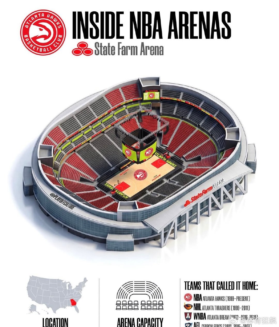 篮天下世界上的美丽球场 亚特兰大老鹰队主场State Farm Arena,有打卡过的球迷吗?