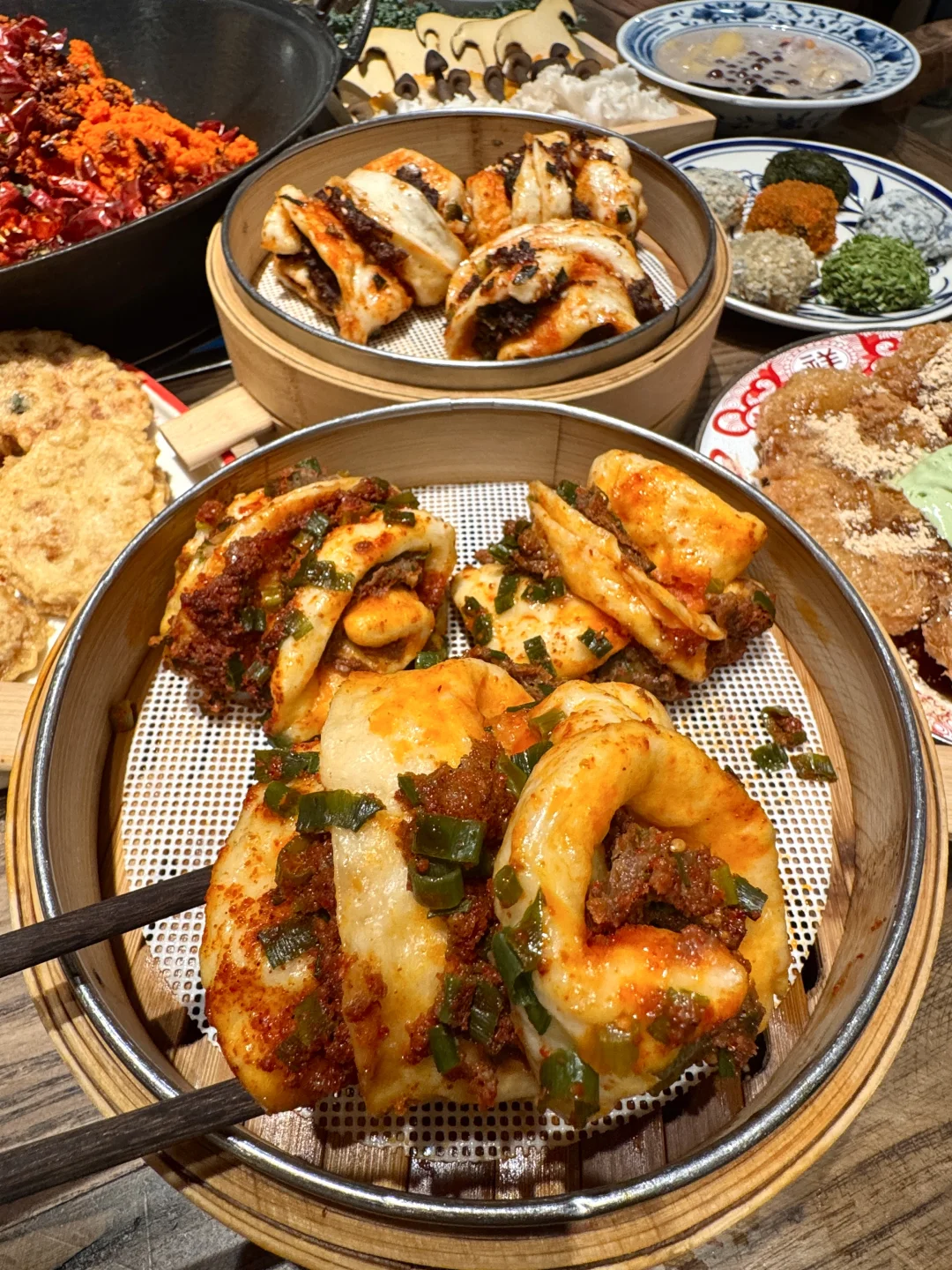 兰州学府路附近无敌好吃的重庆火锅店!!! 各种小吃都是姨姨们现做的,锅底现炒,牛肉🥩现切……真的狠狠安心到了!!! - ☑️手工花卷 松软的花卷裹着料多到pu出来的麻辣牛肉🐂一口下去,好好吃好上头!!! ☑️脆哨炒饭 师傅炒得时候就差点被香晕了!!!流心蛋🍳浸润每一粒米饭,一口一勺好吃哭😭 ☑️冰淇淋蛋煎糍粑 糍粑裹着蛋液重复煎3次才出炉,口感太美妙了,咬下去外酥里糯,搭配抹茶冰淇淋🍵那叫一个绝!!! 兰州美食兰州旅游兰州旅游攻略兰州吃喝玩乐兰州探店周末去哪儿袁山山重庆火锅跟我来探店