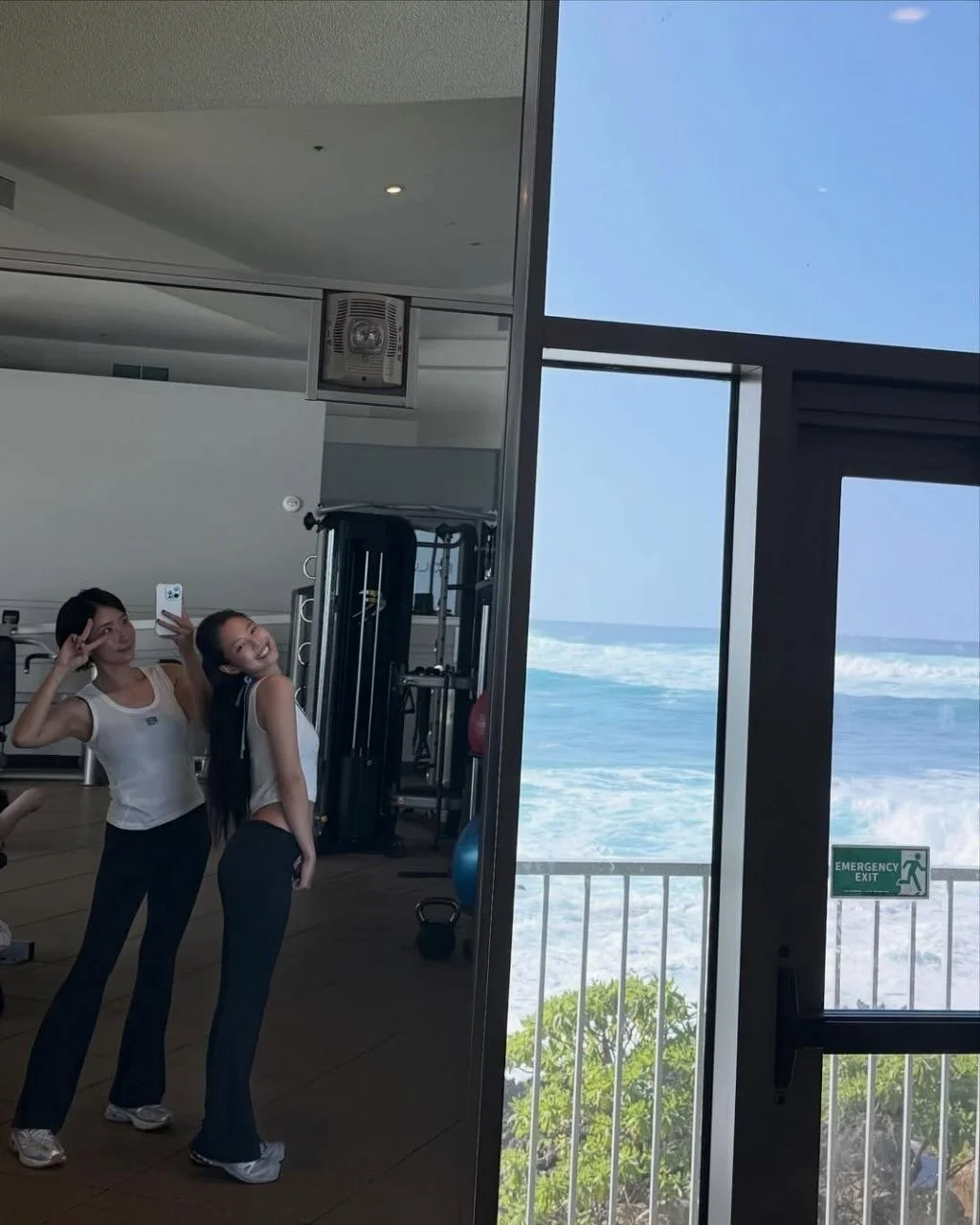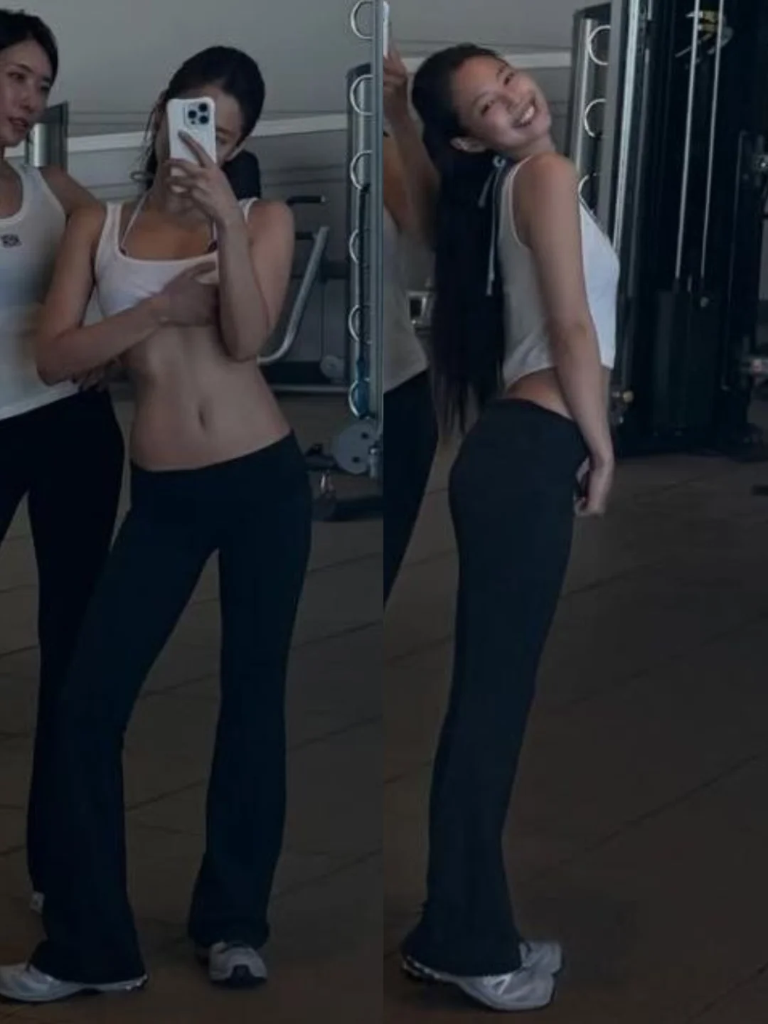 Jennie一组与教练的健身房合照,妮这好身材应该没少练吧!