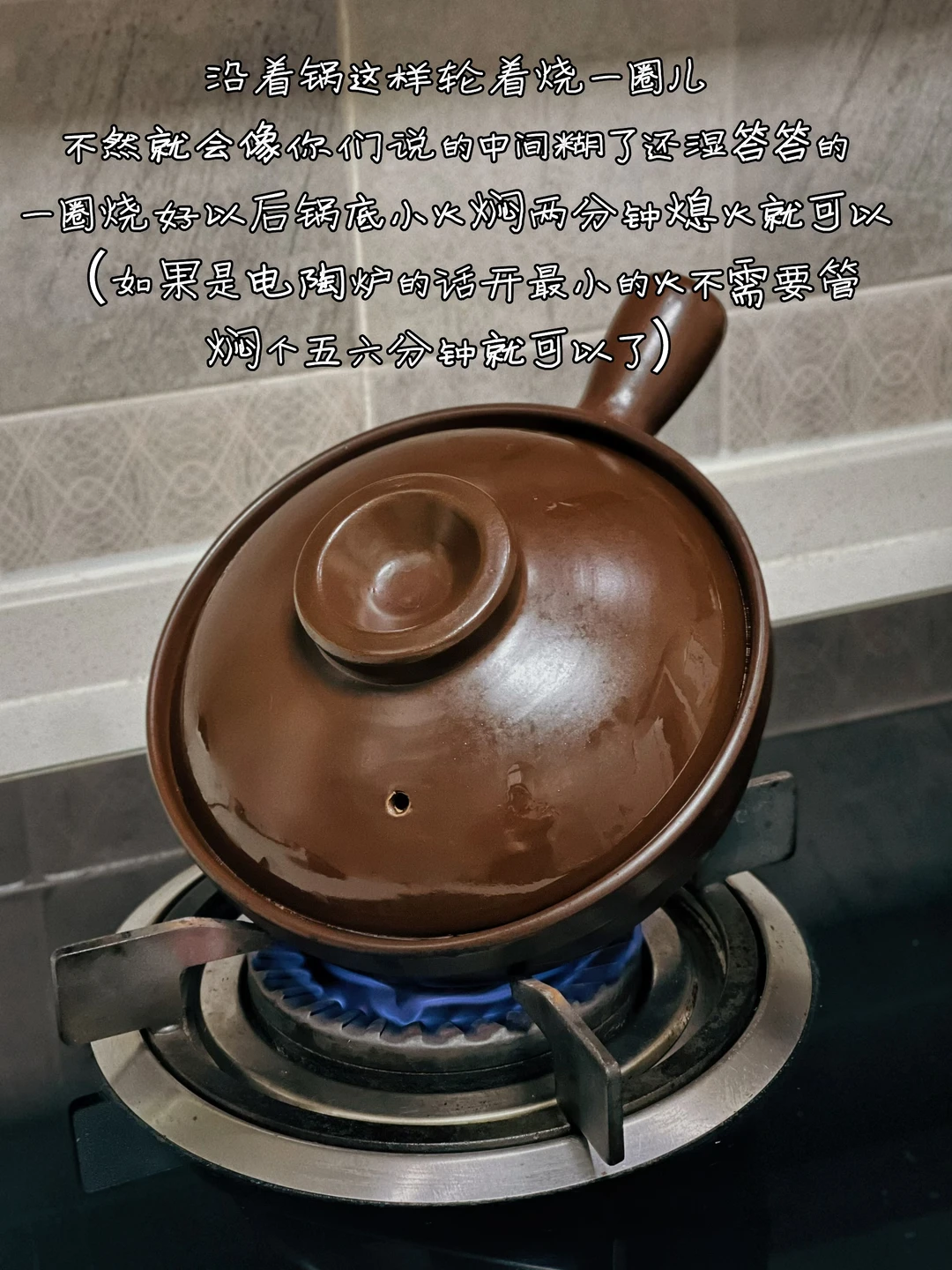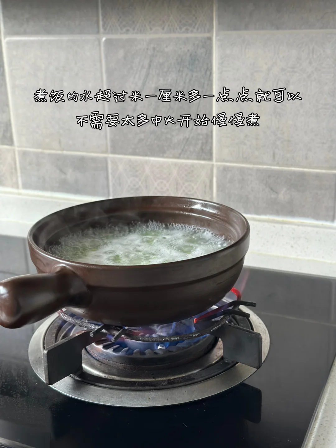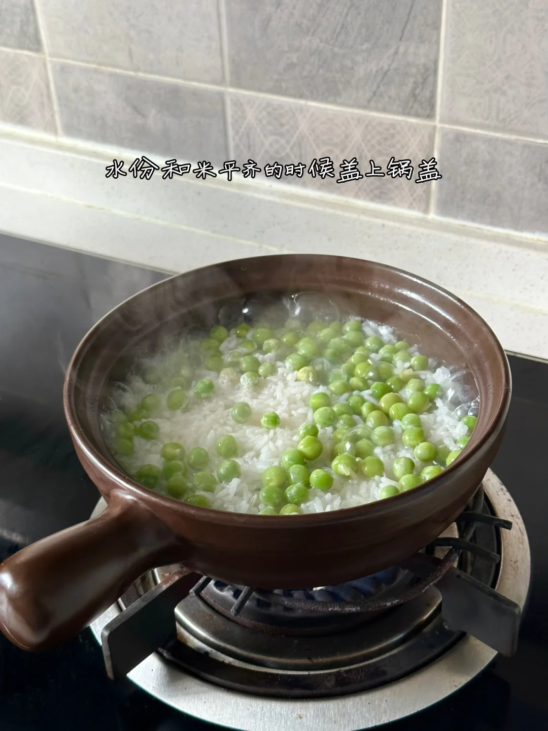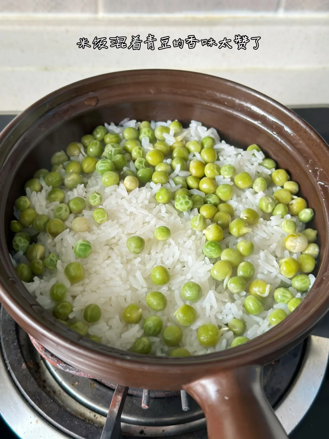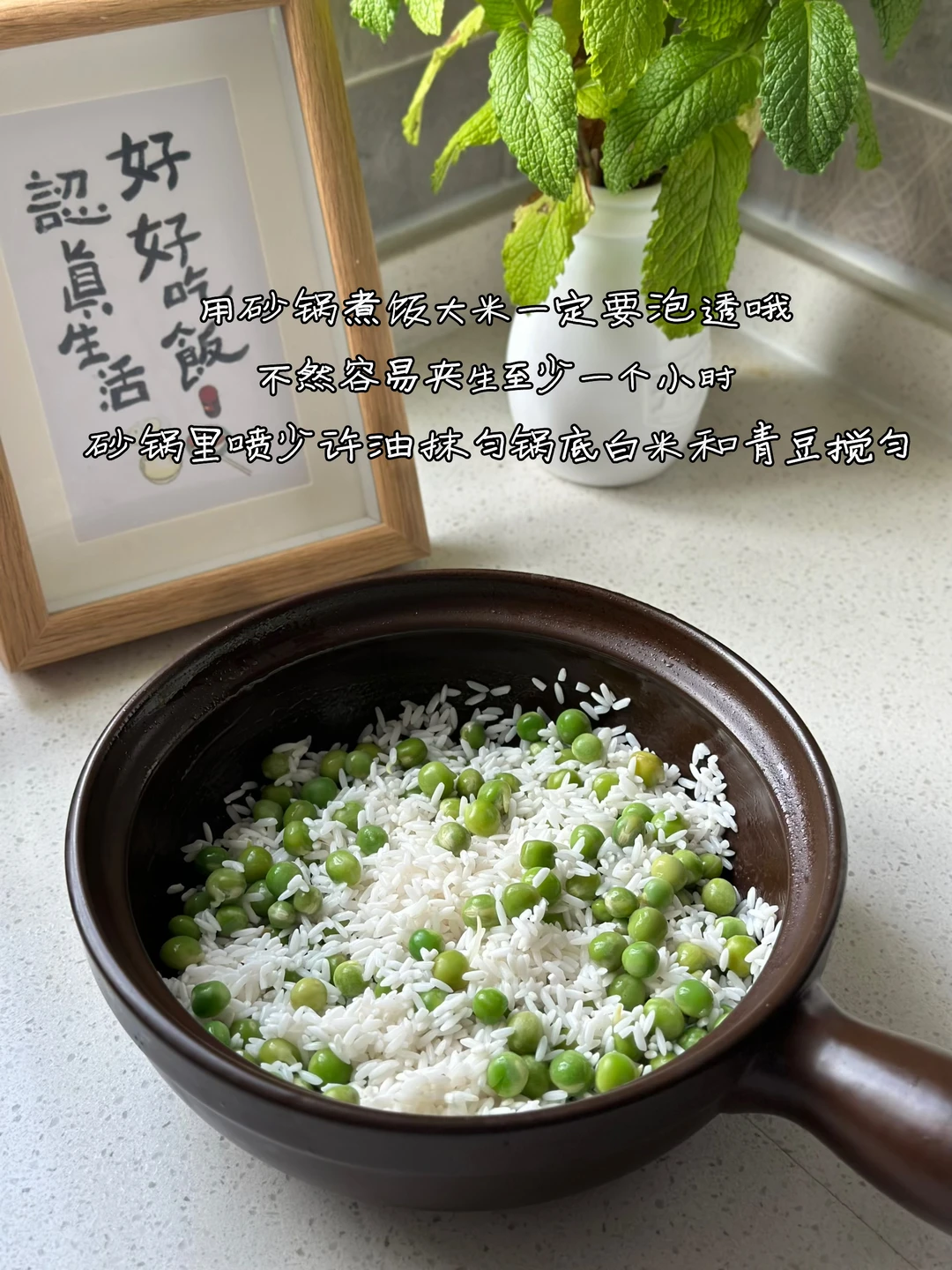很多人都喜欢用砂锅煮饭但是确煮不好,今天给你们分享详细的教程,我家基本都是砂锅煮好吃又方便 1. 用砂锅煮饭大米一定要泡透哦不然容易夹生至少一个小时砂锅里喷少许油抹匀锅底白米和青豆搅匀 2. 煮饭的水超过米一厘米多一点点就可以不需要太多中火开始慢慢煮 3. 水份和米平齐的时候盖上锅盖 4. 沿着锅这样轮着烧一圈儿不然就会像你们说的中间糊了还湿答答的一圈烧好以后锅底小火焖两分钟熄火就可以(如果是电陶炉的话开最小的火不需要管焖个五六分钟就可以了) 5. 米饭混着青豆的香味太赞了