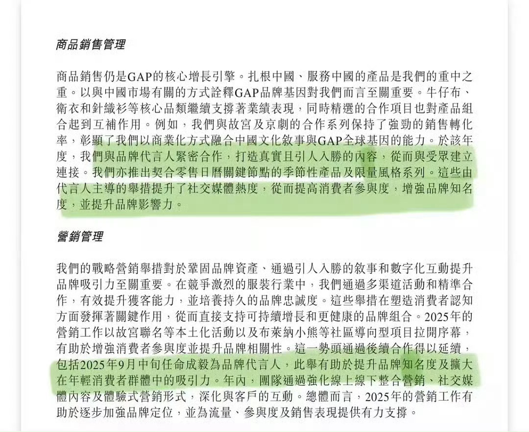自2025年9月成毅代言后GAP中国销售额暴涨超20%Q4单季首次盈利,收入同比大涨24%被品牌创始人亲自认证:里程碑式突破。
