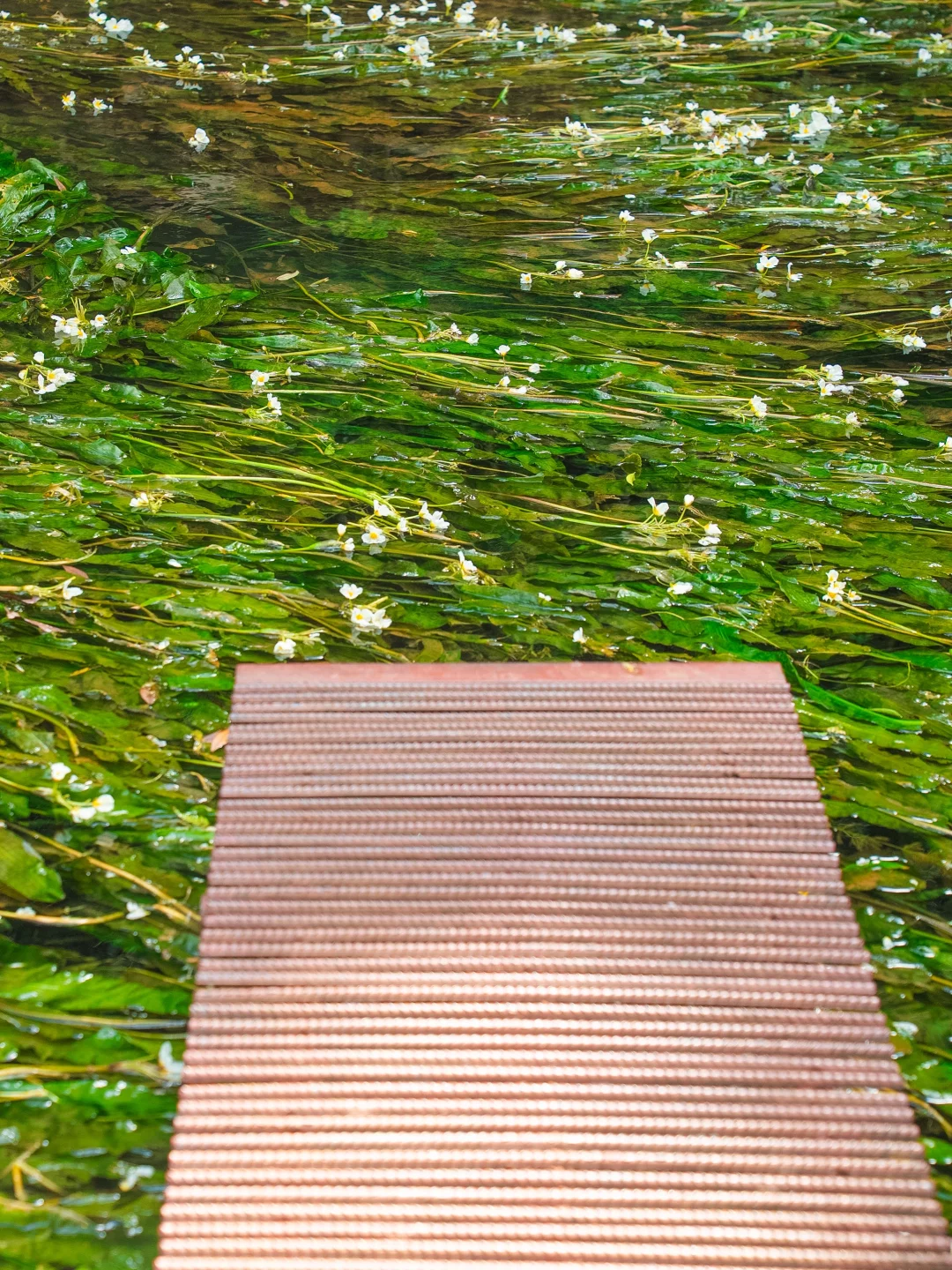 水面氤氲着淡淡的水汽,白色花穗随波轻轻晃