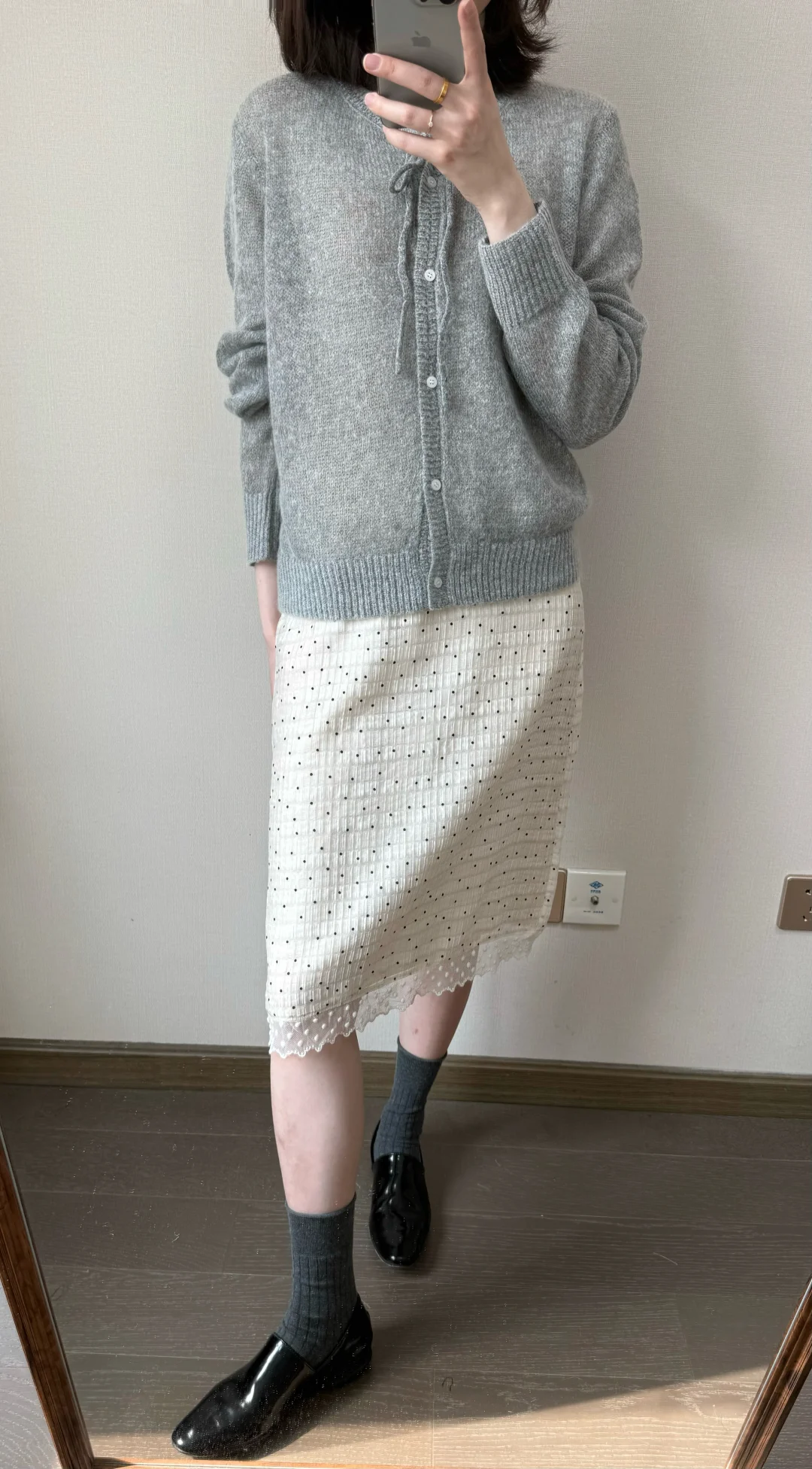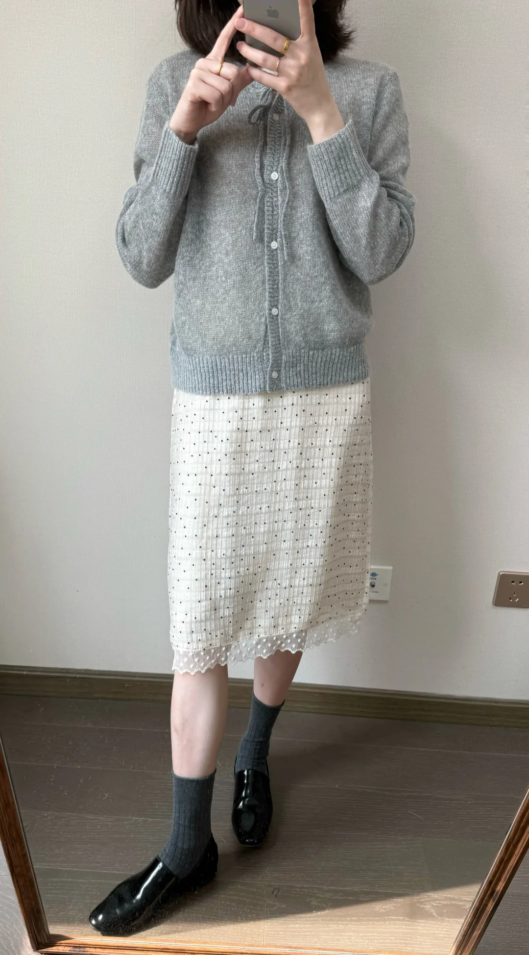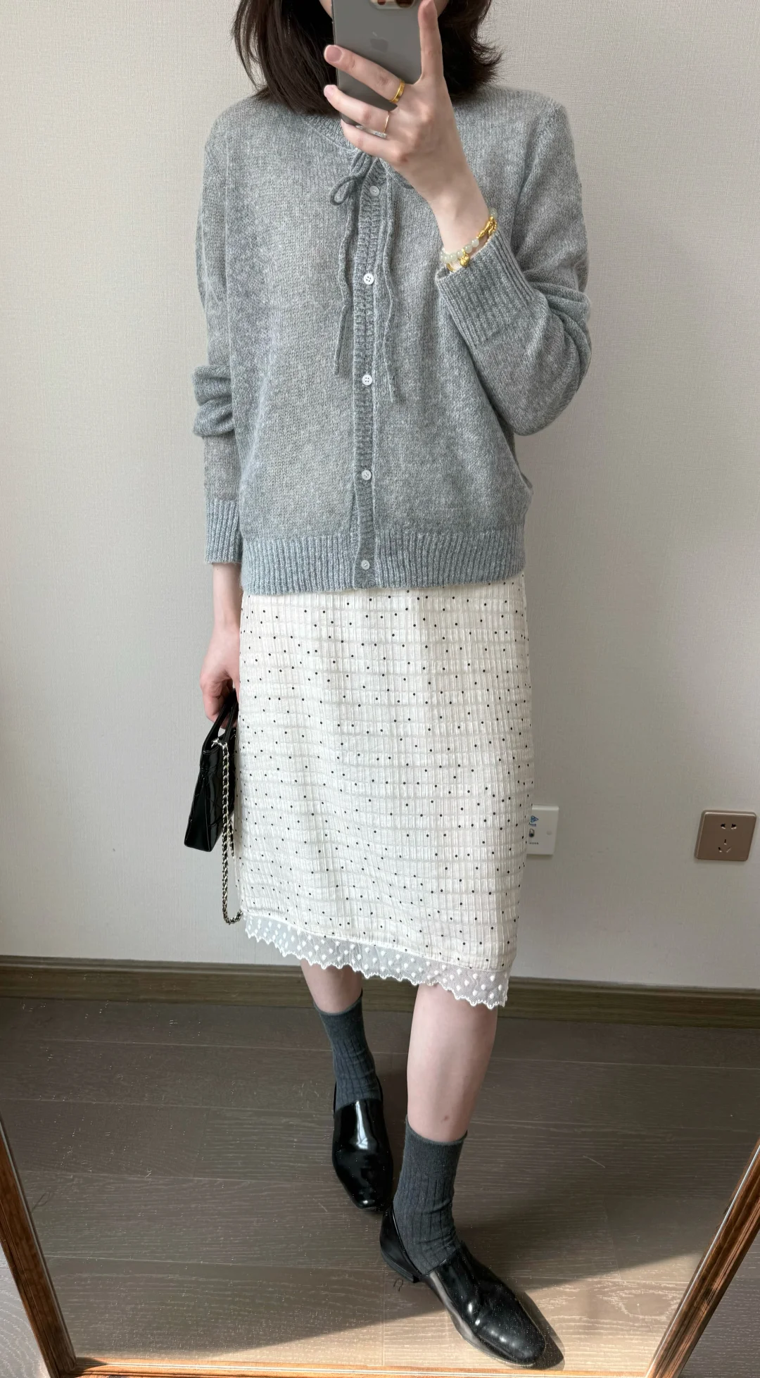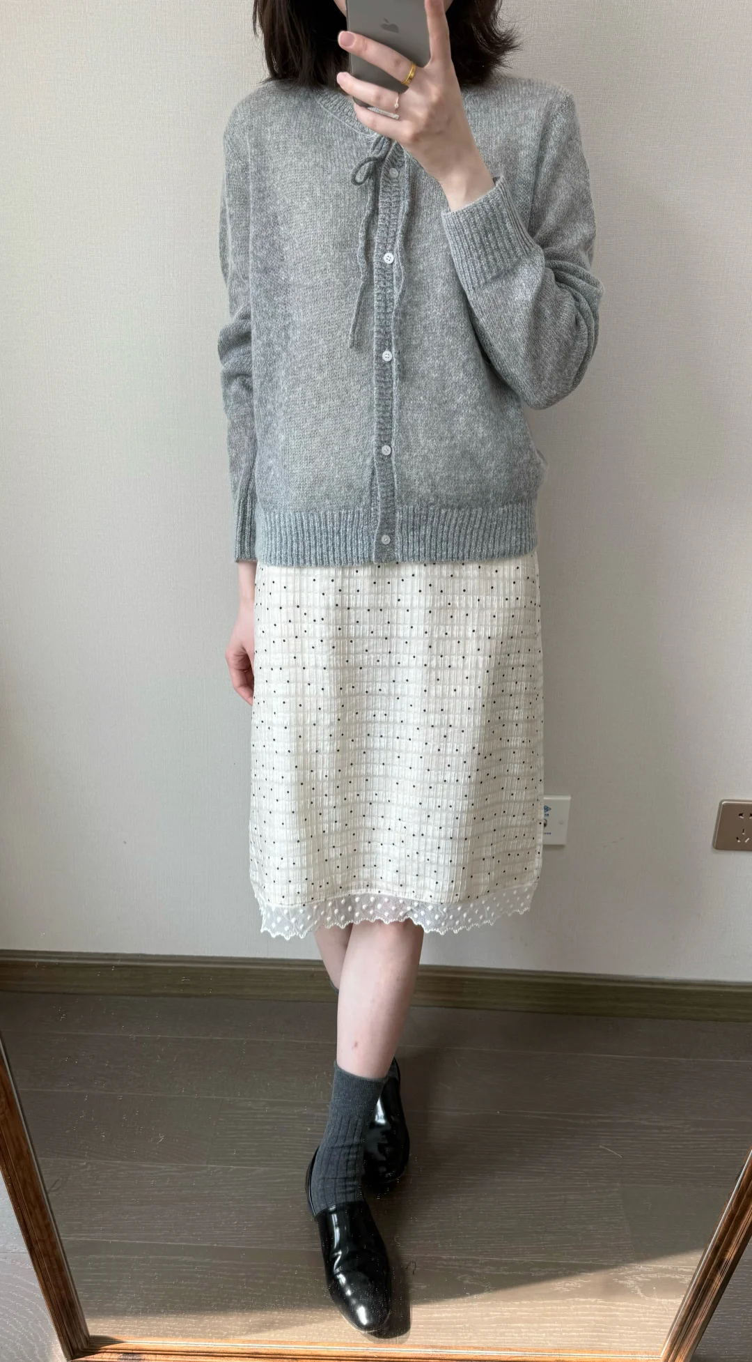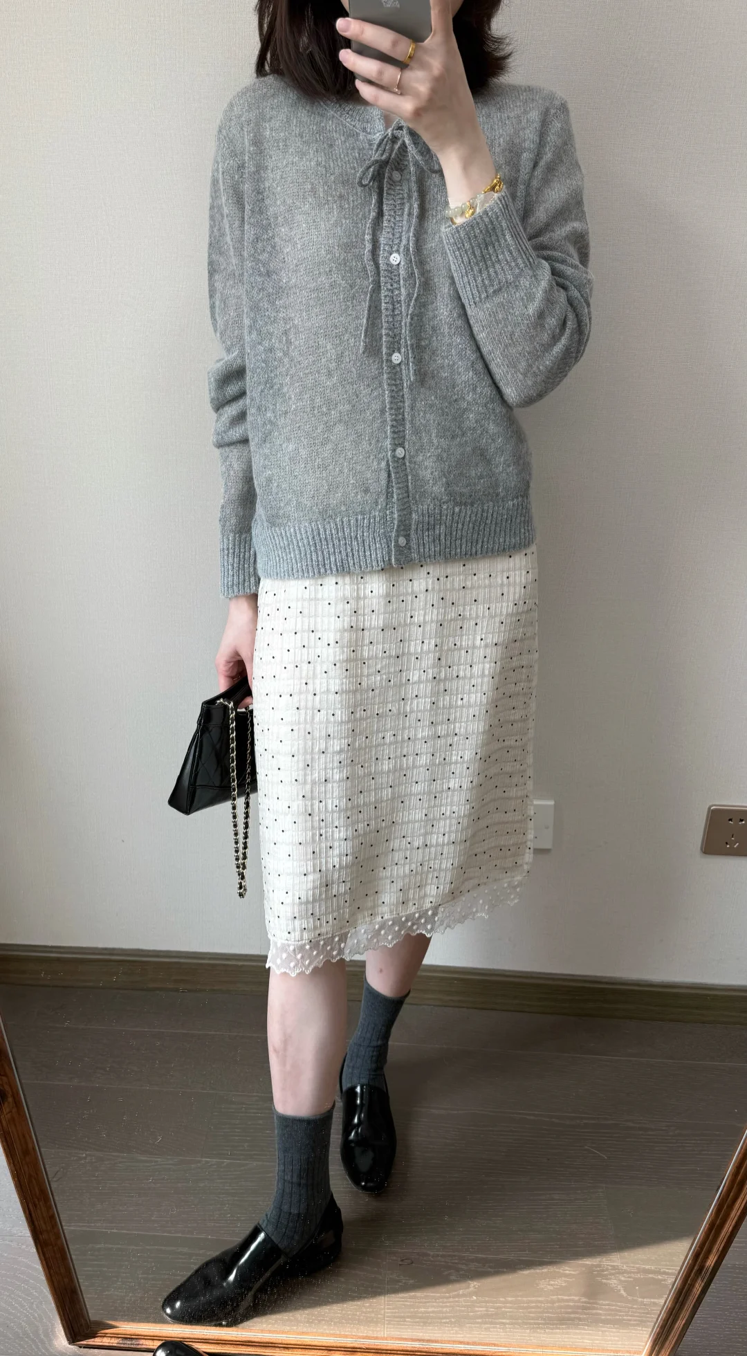 早春穿什么🍨/灰色针织和波点半裙