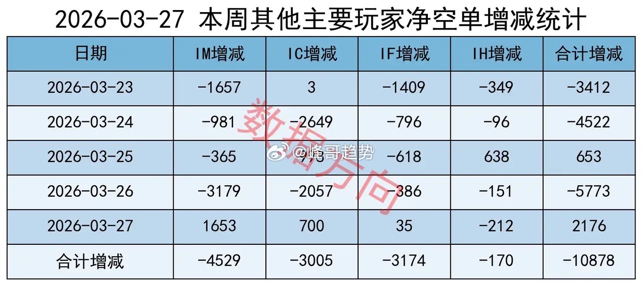其他主要玩家,本周减空10878手;