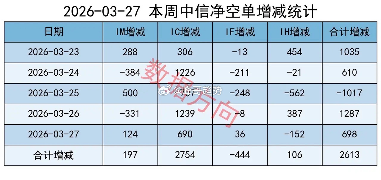 某信,本周加空2613手;
