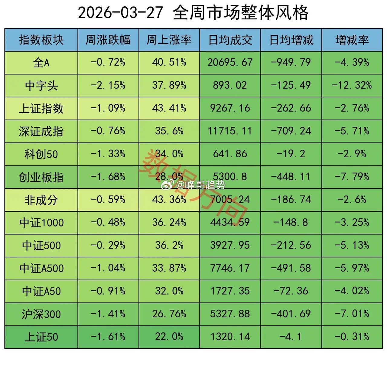 本周,大盘触底反弹,全周A指数周跌0.72%,个股上涨率41%,日均成交额较上周减少950亿或4%。