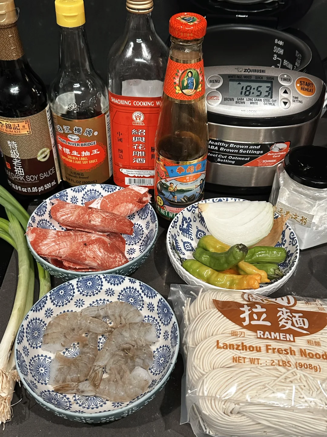 发现国内有家主打“本帮拌面”的王繁星面馆很火,开了不少店。它和传统的上海葱油拌面不一样,不只是简约的阳春面配一大勺葱油和炸葱,还会加各种现炒浇头,像爆炒腰花,牛蛙鸡杂,小炒牛肉等。于是乎我就很好奇这味道,决定复刻一下虾仁牛肉口味!
