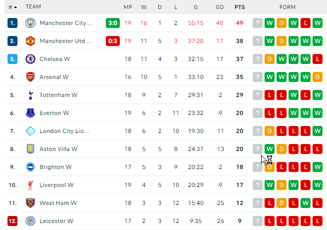 利物浦女足 只要下轮战胜西汉姆,就基本意味着提前两轮保级成功,除非出现西汉姆和莱斯特余下比赛都保持全胜的情况,西汉姆最后一轮是对一骑绝尘的曼城,净胜球比 TOP 4 另外三队的进球都多……两极分化依旧严重,其他8队都是负净胜球下周足总杯不要辜负好签