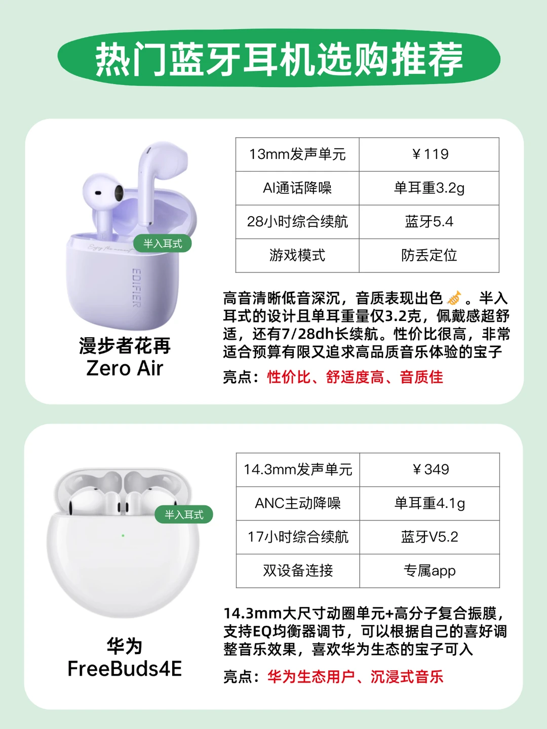 ✅漫步者花再Zero Air 119元