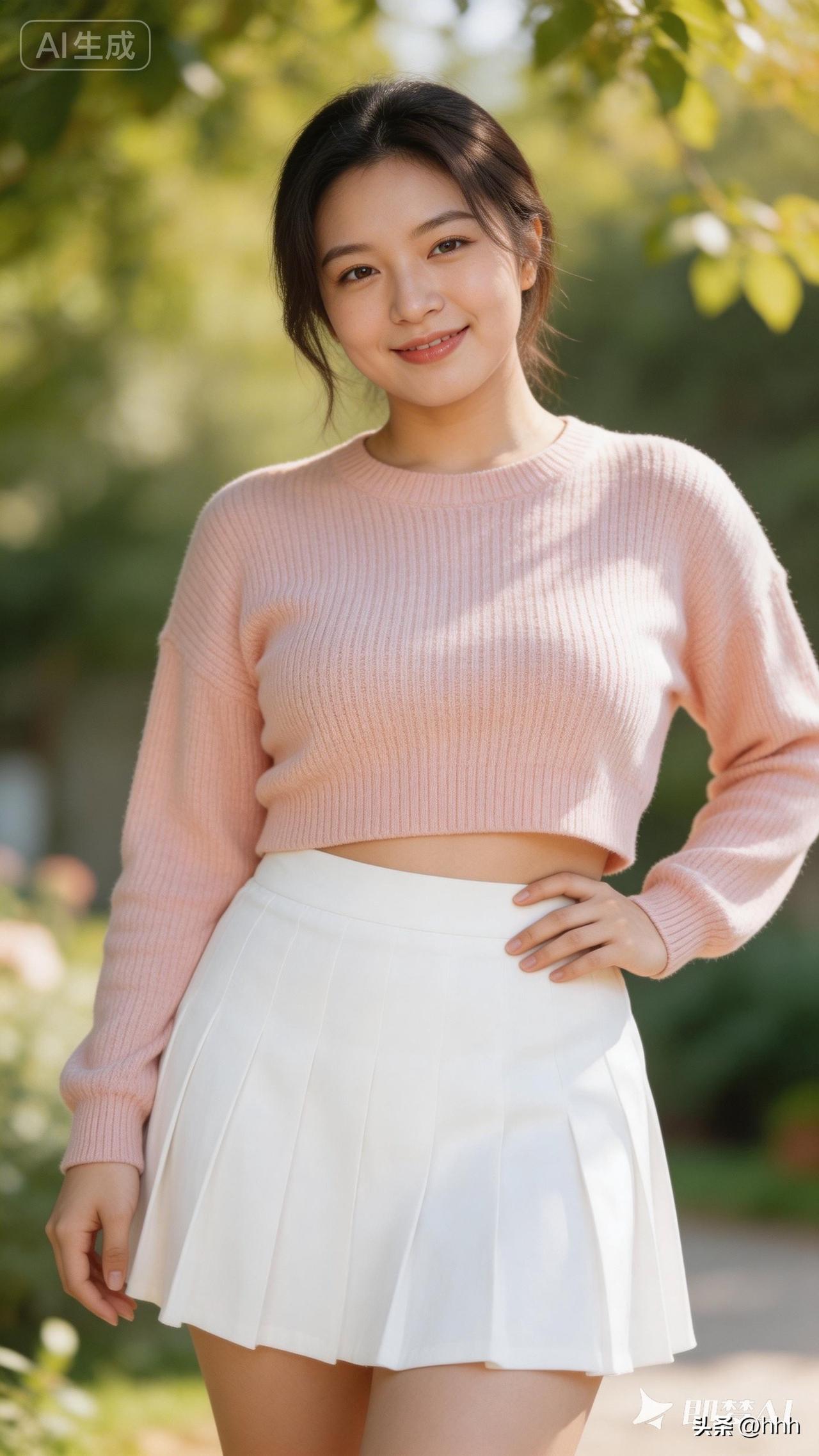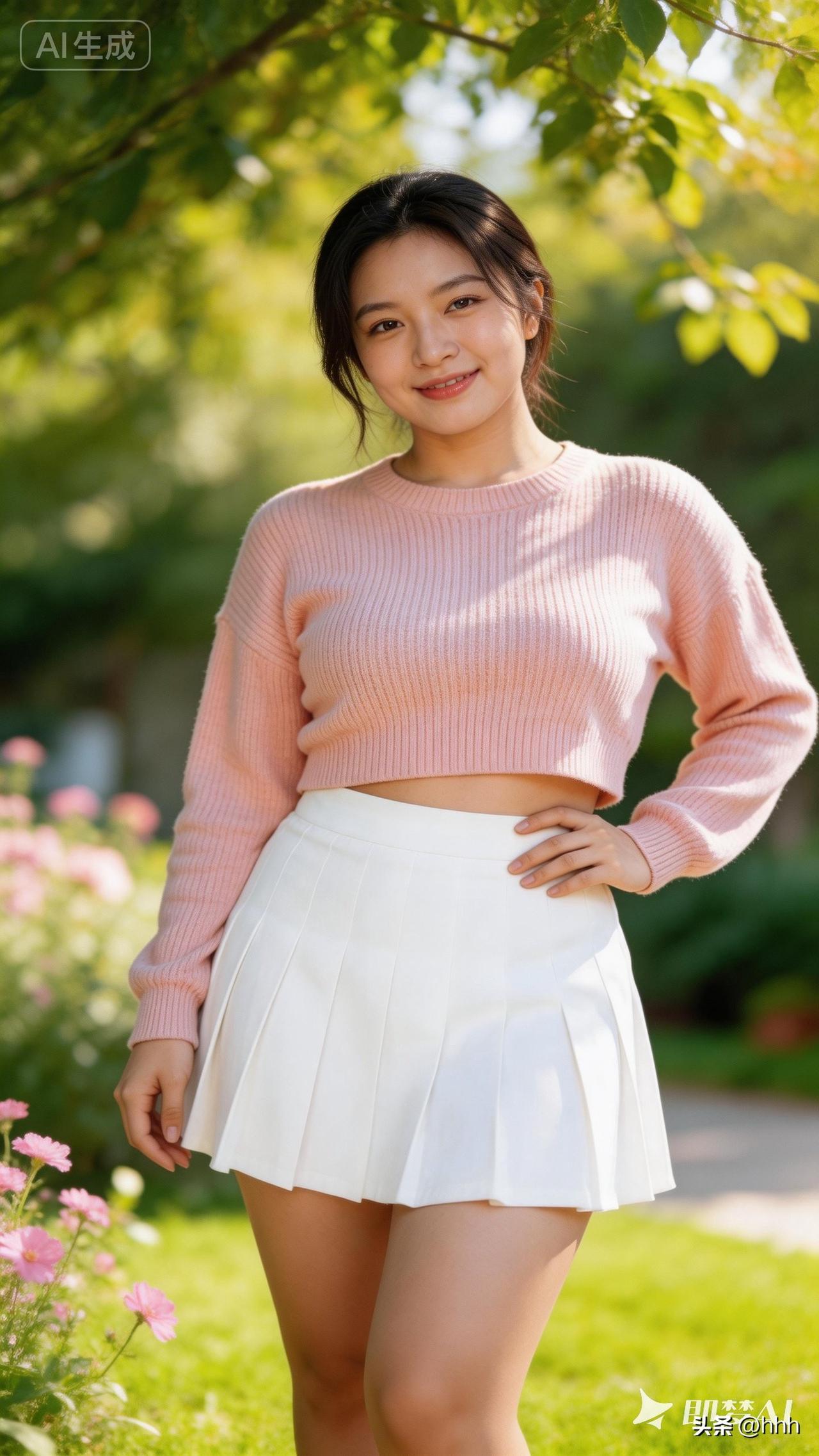 粉嫩毛衣搭配白色百褶裙,元气满满的一天!🌞👗👗
