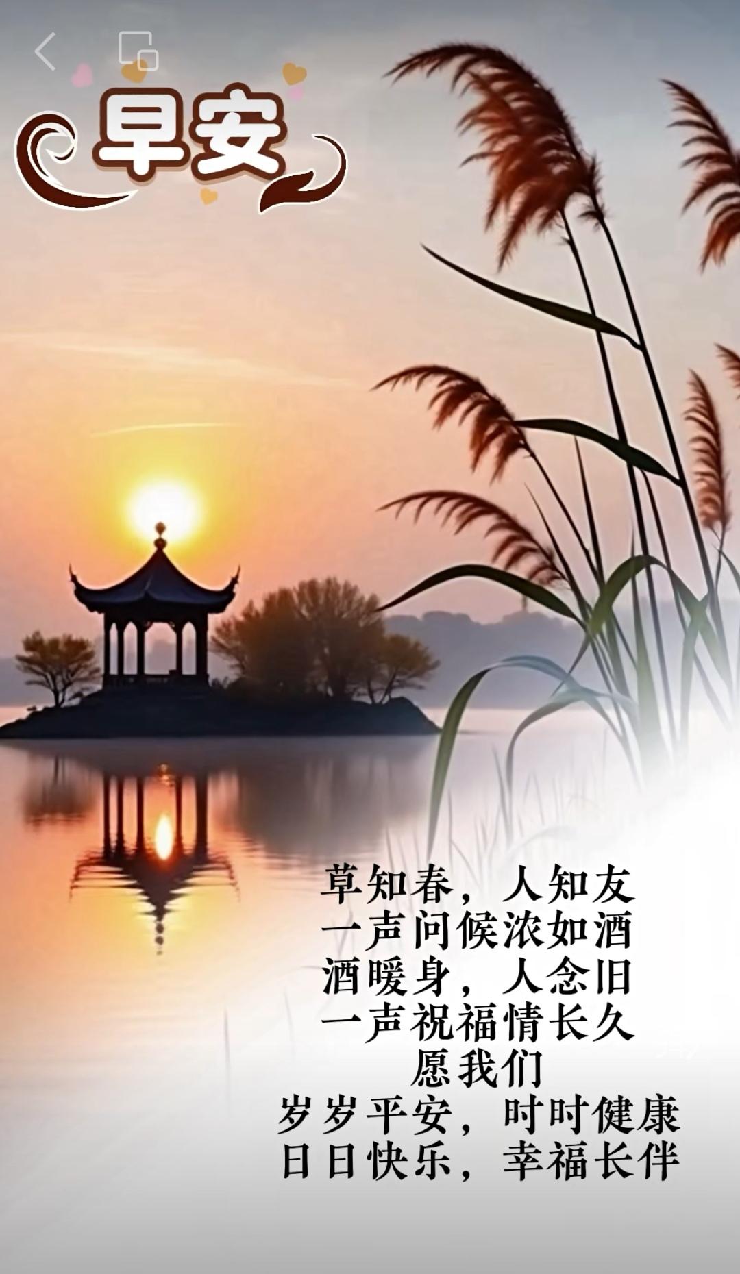 美好的祝福伴著旭日升起, 清晨的問候在晨風中傳遞, 讓平安吉祥快樂健康同在。 早
